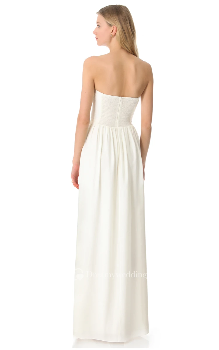Long Strapless Pleated Sheath Chiffon Dress