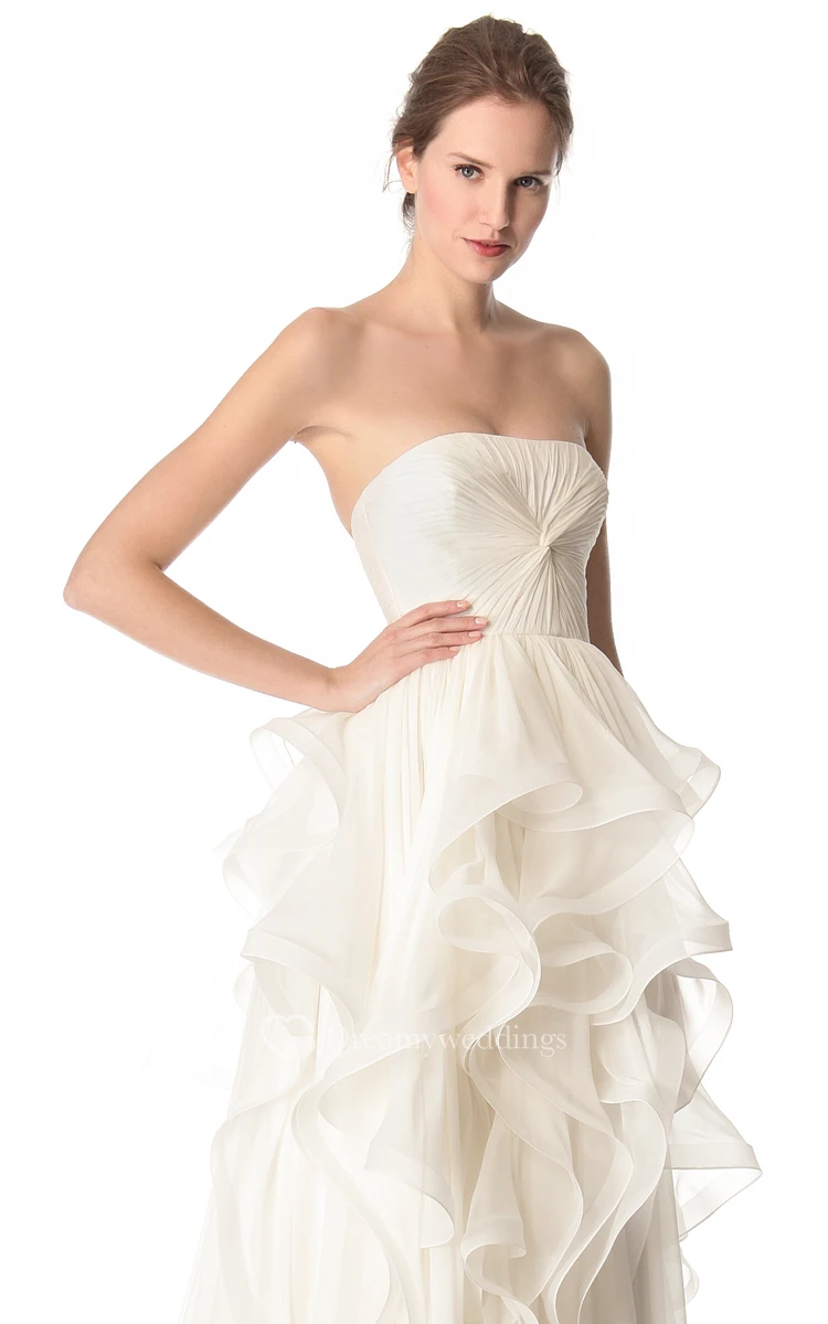 Long Strapless Ruffled A-line Organza Dress