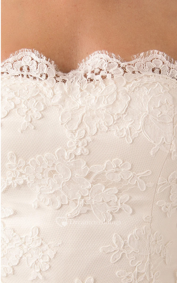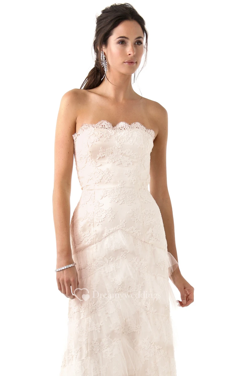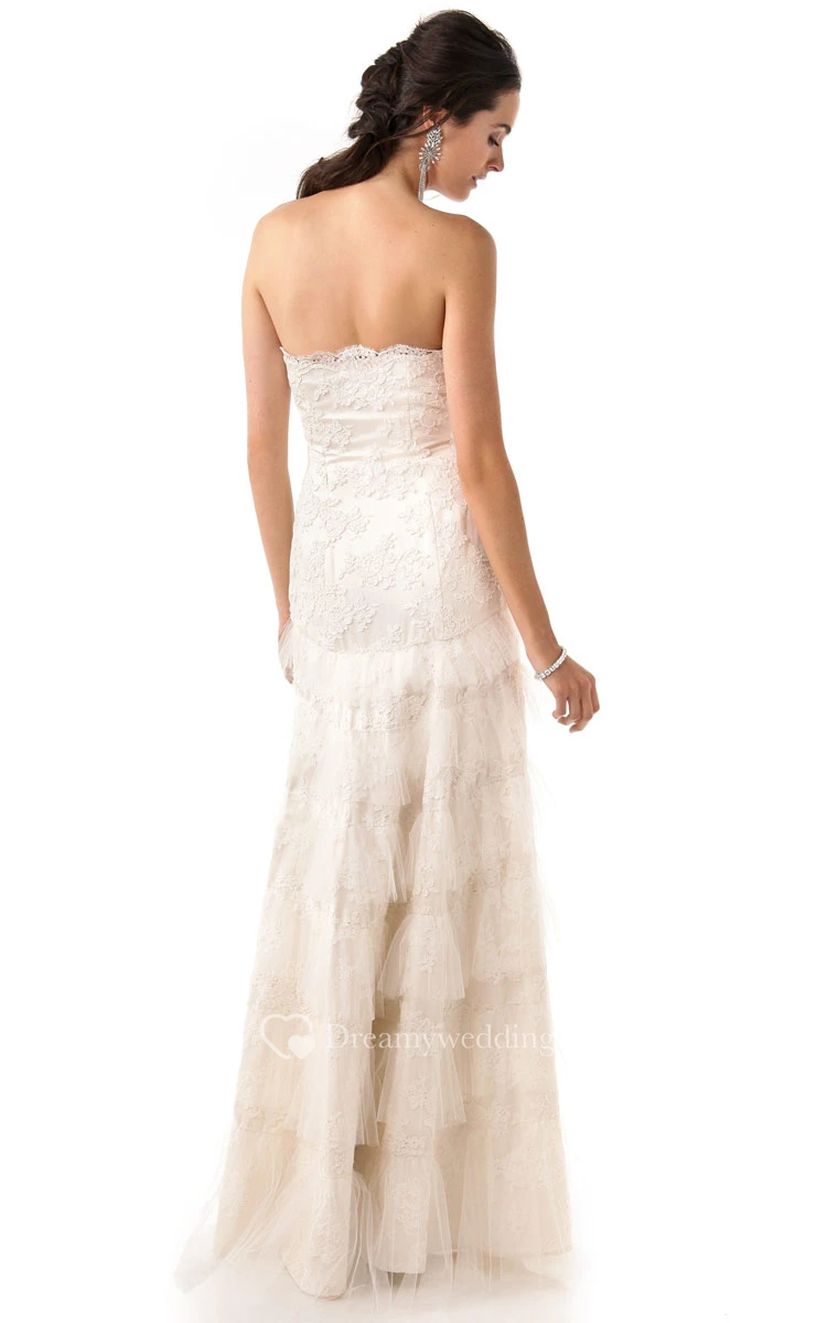 Long Strapless Ruffled Sheath Lace Dress