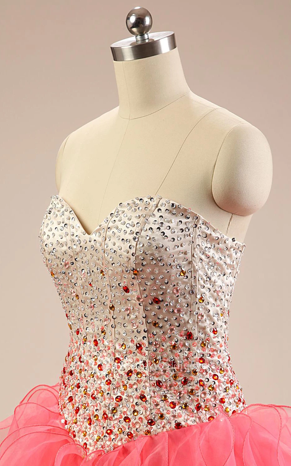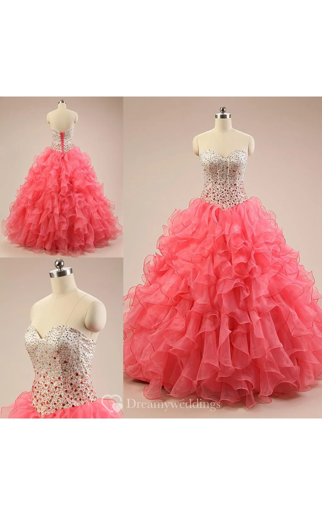 Long Sweetheart Beading Ruffles Lace-Up Back Lace Sequins Organza Dress