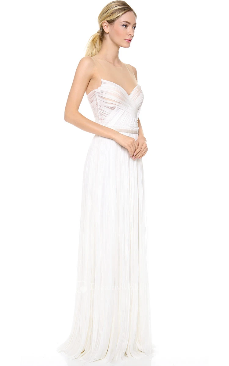 Long Sweetheart Sheath Chiffon Dress With Satin Sash