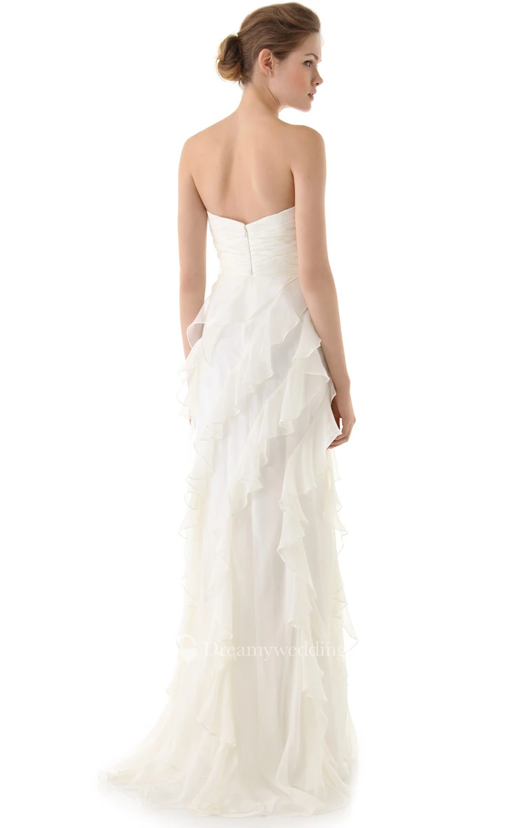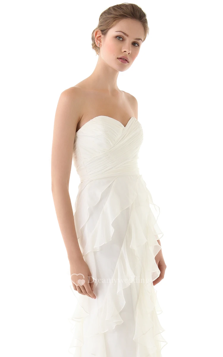 Long Sweetheart Sheath Organza Dress With Feathery Ruffles