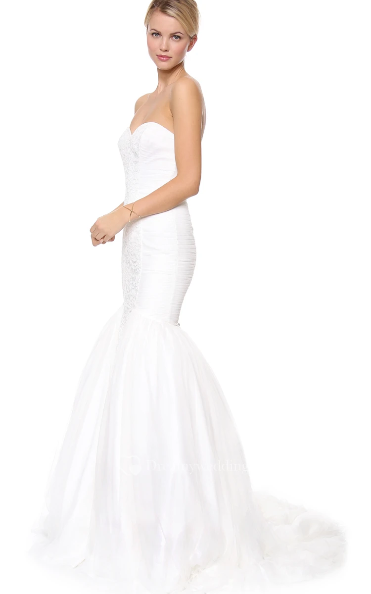 Long Sweetheart Trumpet Taffeta Dress With Lace Patterns