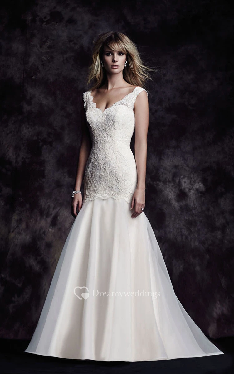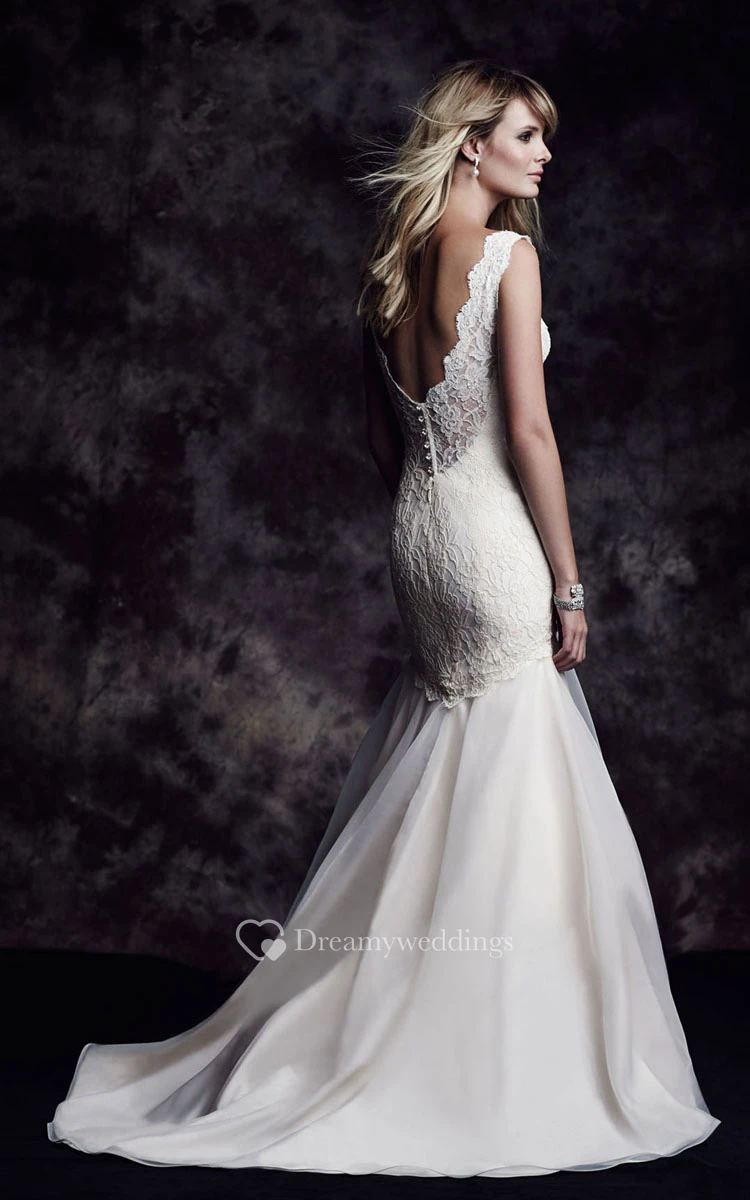 Long V-Neck Mermaid Chic Cap-Sleeved Dress With Low-V Back