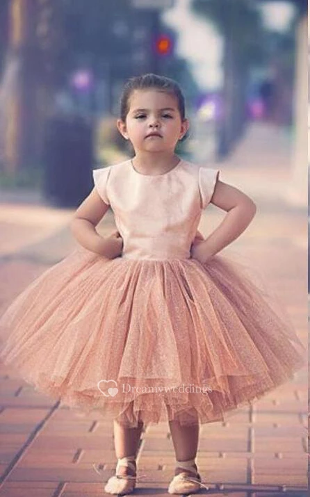 Lovely Cap Sleeve Tulle Princess Flower Girl Dress Bowknot
