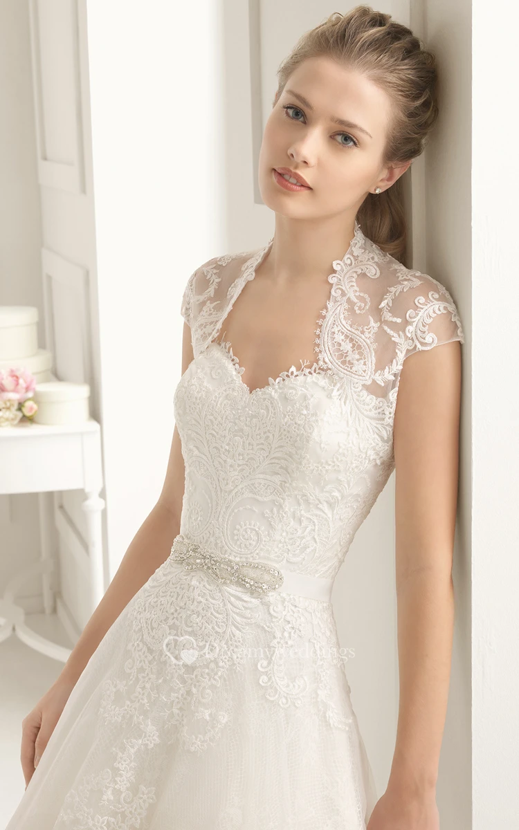 Lovely Gown With Cap-Sleeved Cape And Bead Sash
