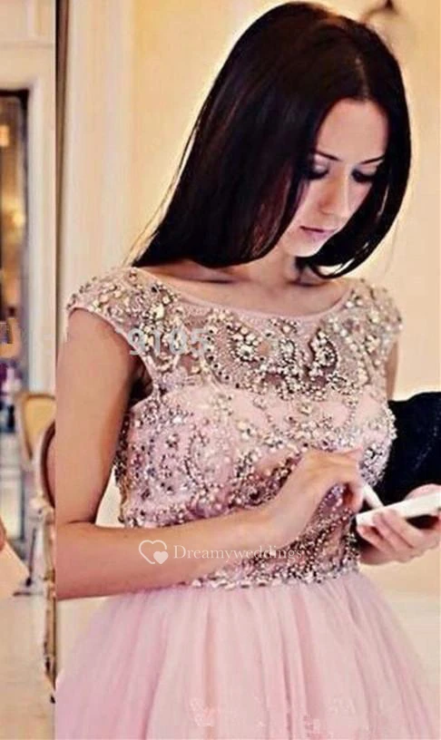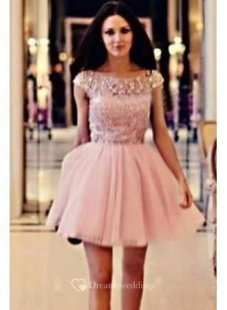 Lovely Pink Crystals Short Homecoming Dress Cap Sleeve