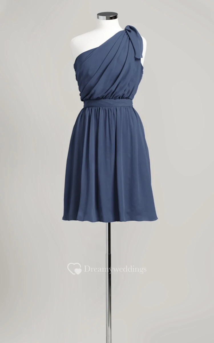 Lovely Short Chiffon Dress With Ruching Detail