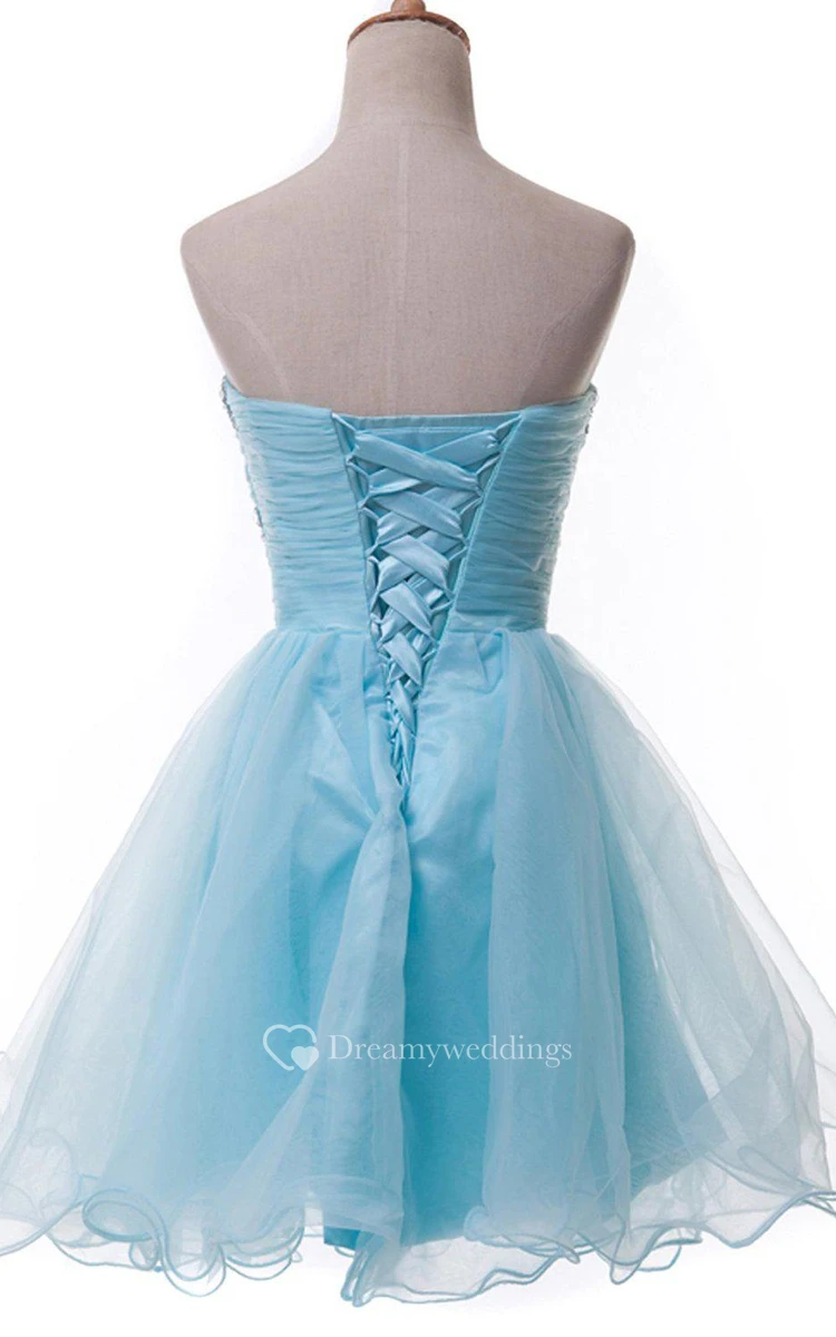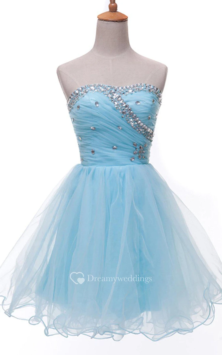 Lovely Strapless A-line Tulle Short Dress With Beadings