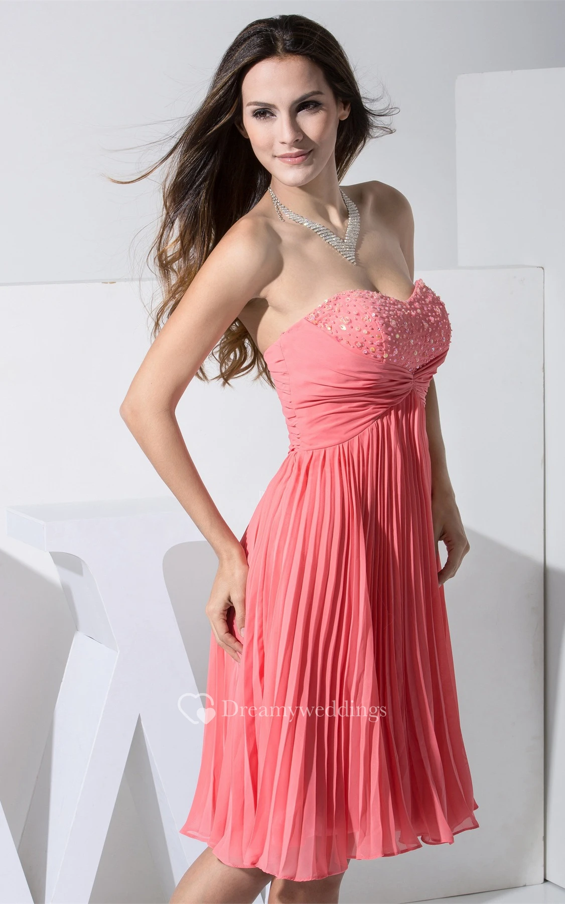 Lovely Sweetheart Knee Length Jeweled Gown With Ruching and Pleats