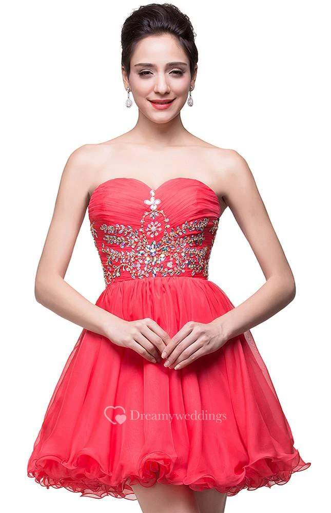 Lovely Watermelon Sweetheart Homeocming Dress Short With Crystals