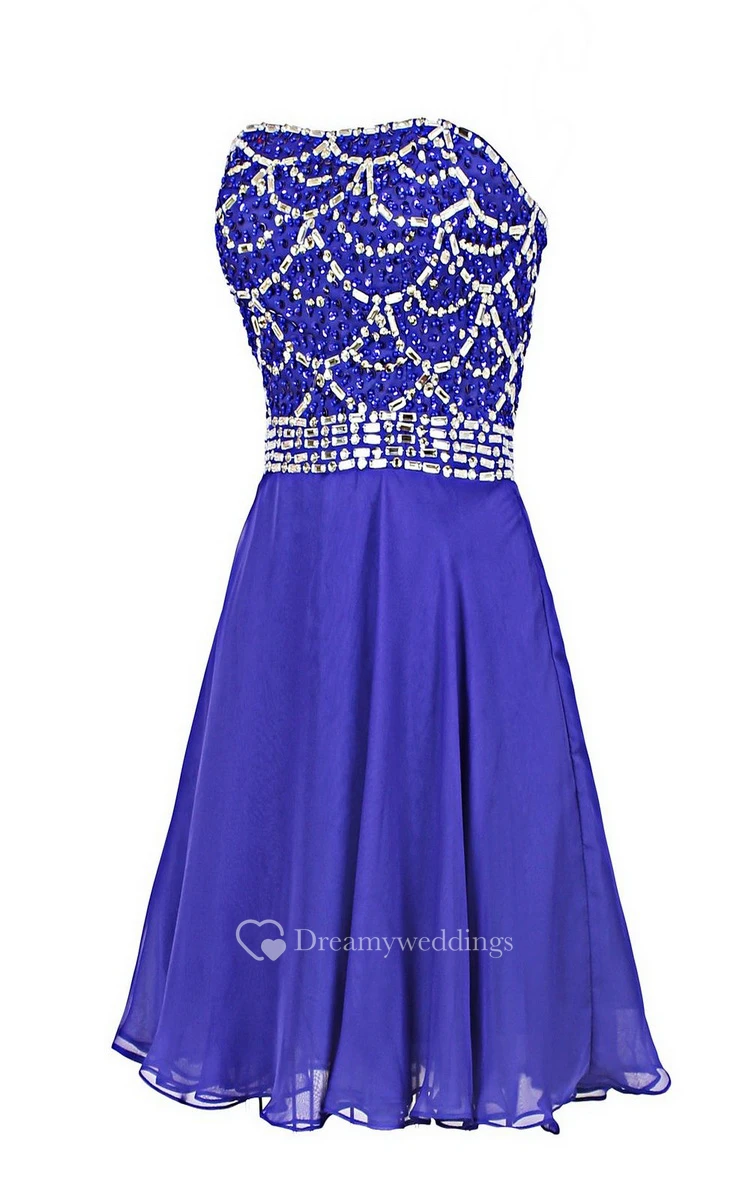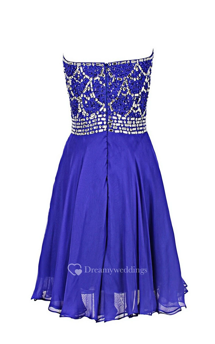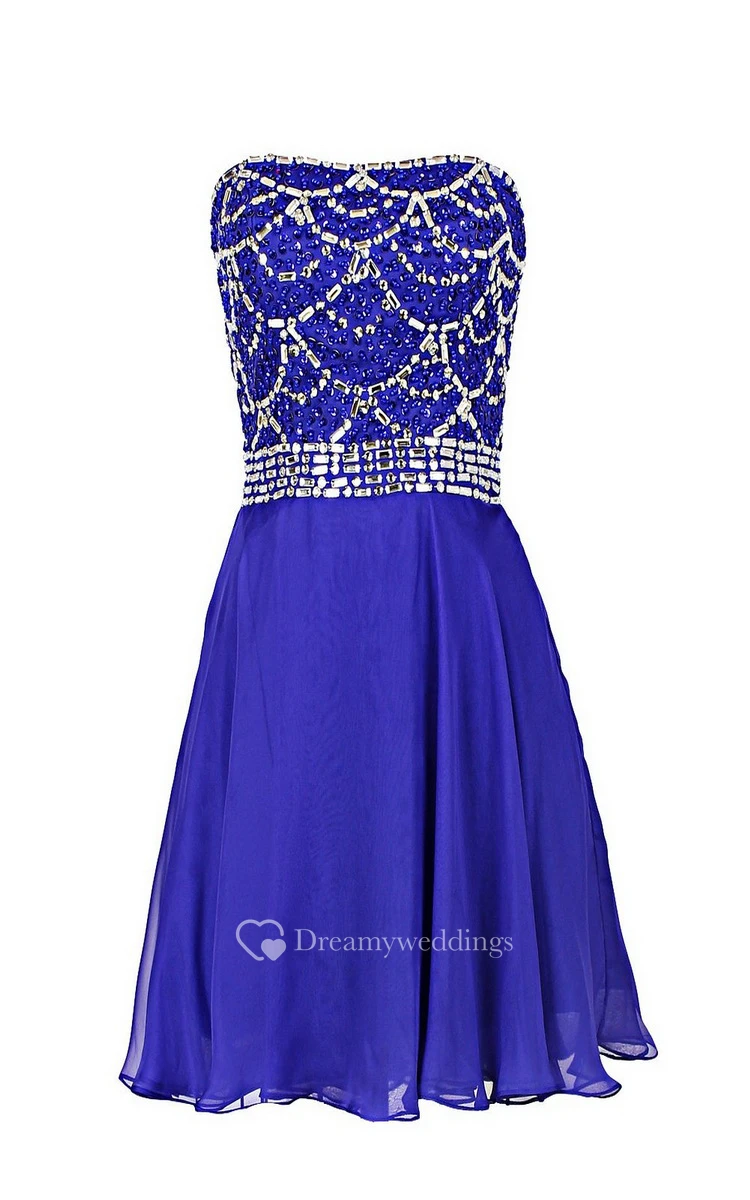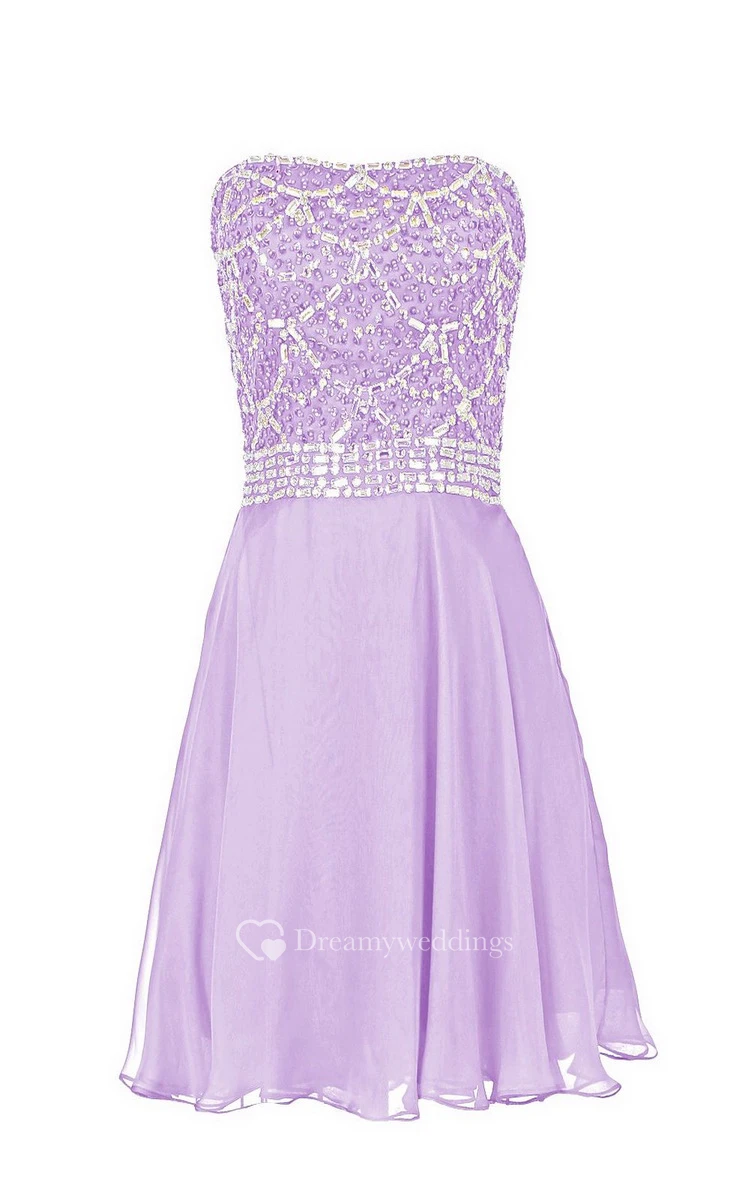 Lustrous Strapless Crystal-beaded Chiffon Short Dress
