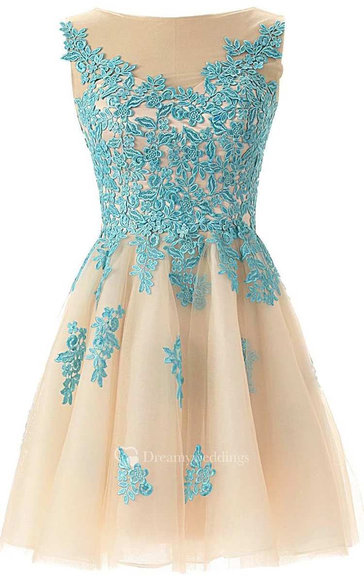 Magical A-line Tulle Short Dress With Lace Appliques