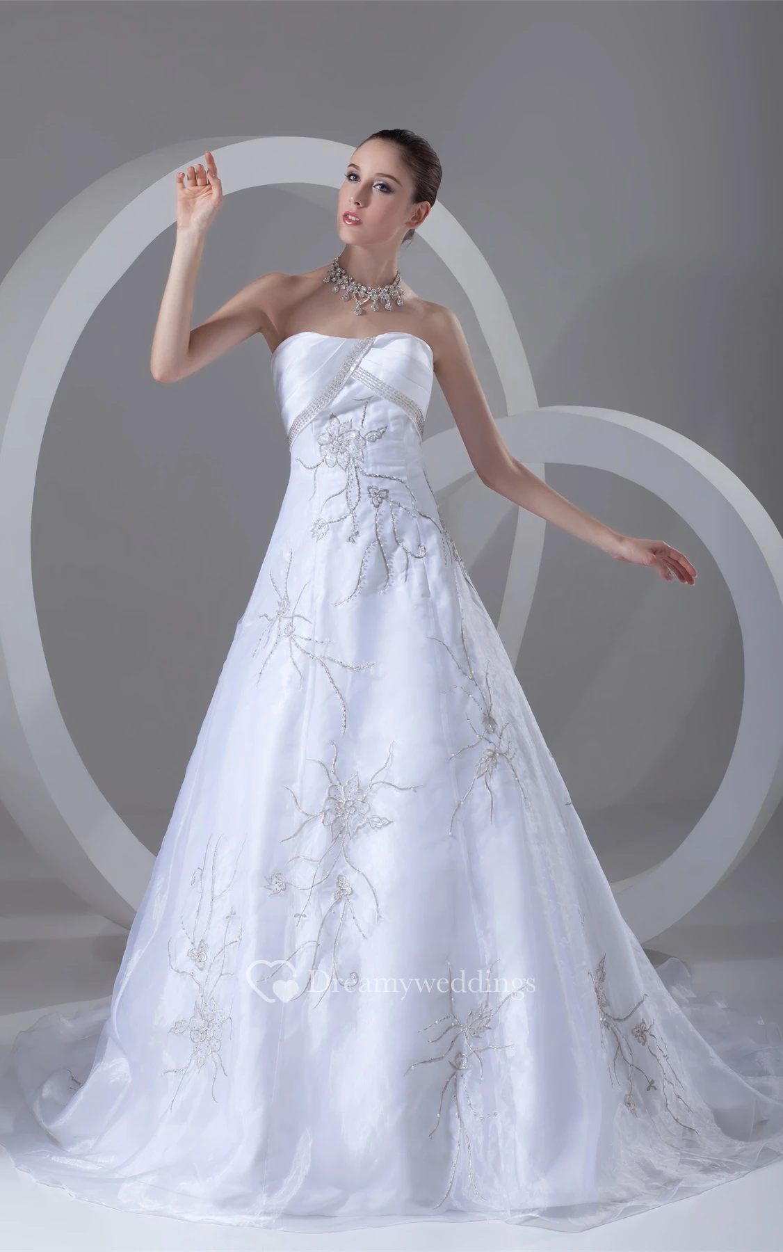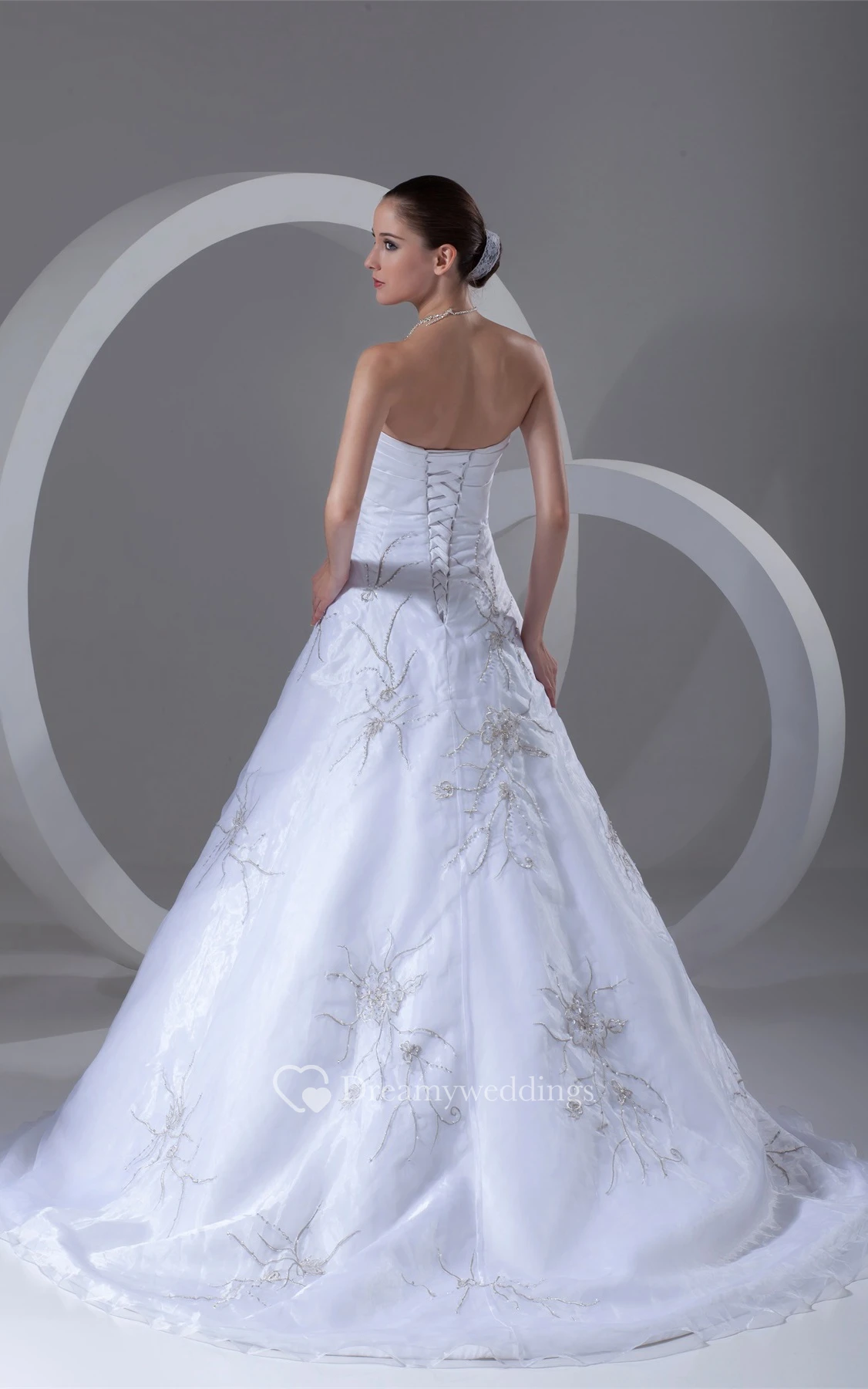 Magnificent Sleeveless Soft Sweetheart a Line Satin Organza Wedding Dresses