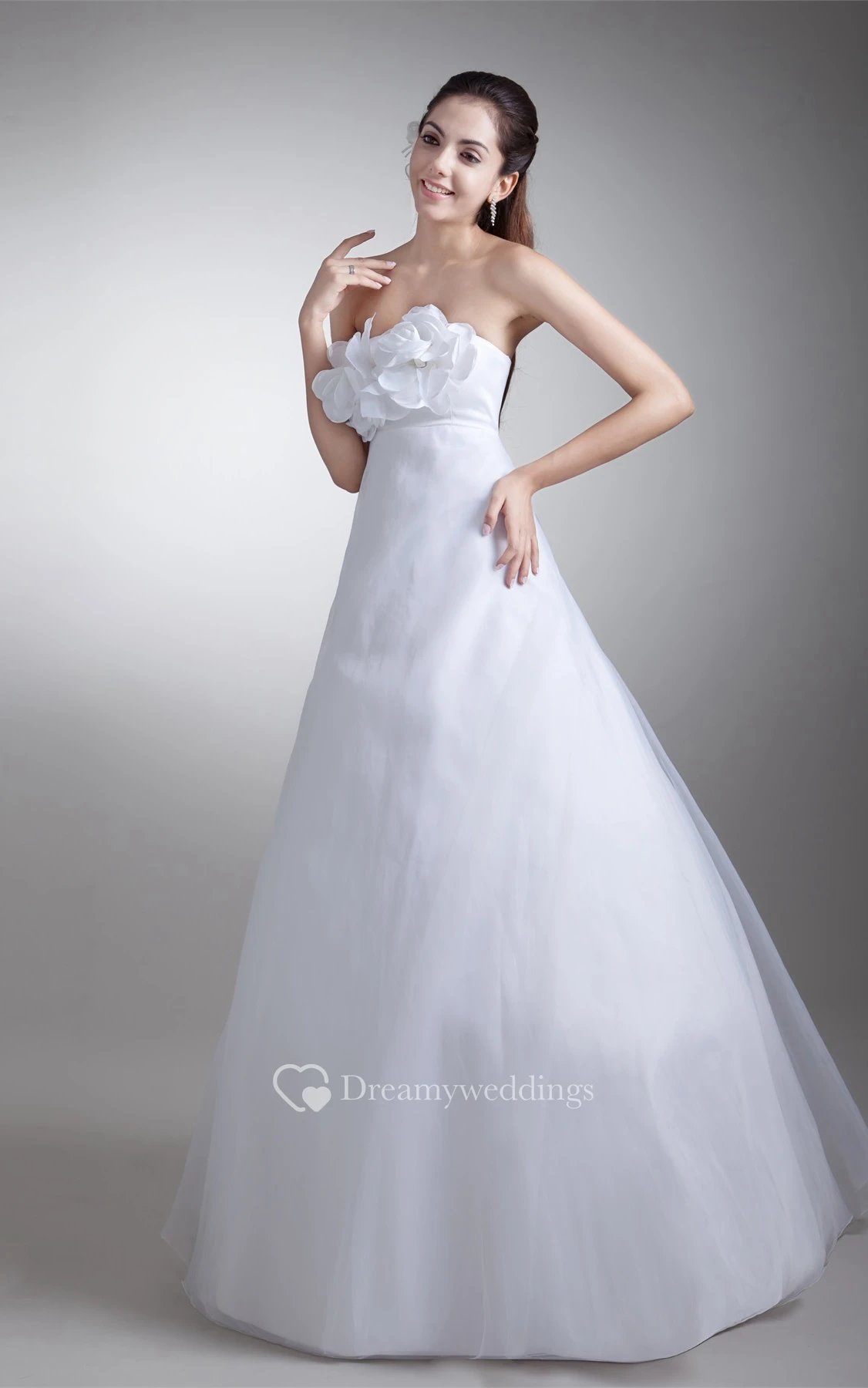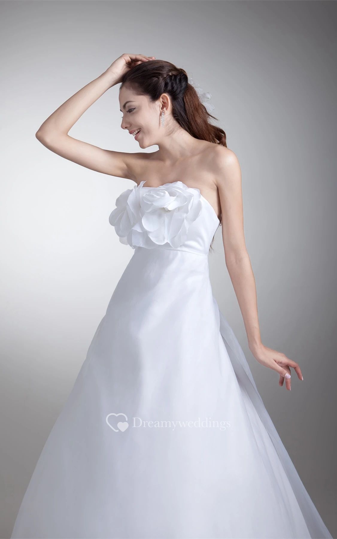 Magnificent Strapless Satin Organza a Line Sleeveless Wedding Dresses
