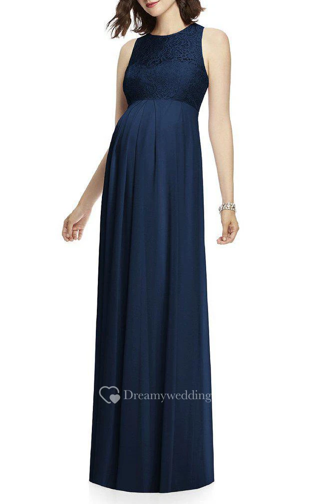 Maternity Sleeveless Chiffon Bridesmaid Dress with Lace Bodice