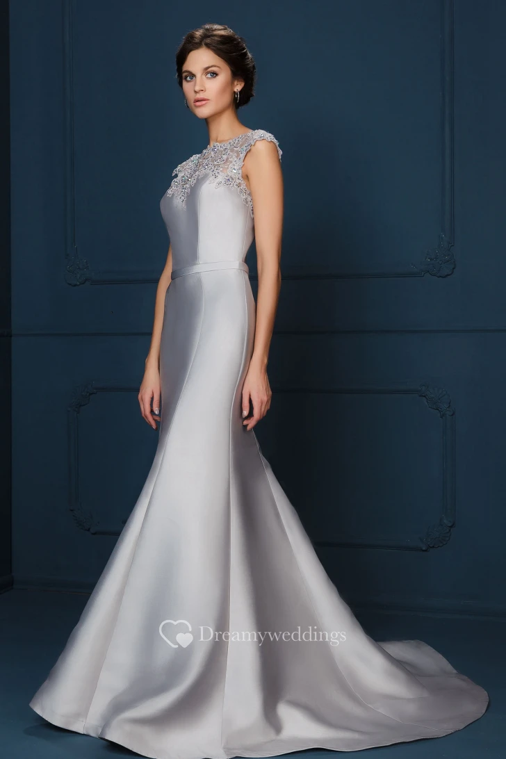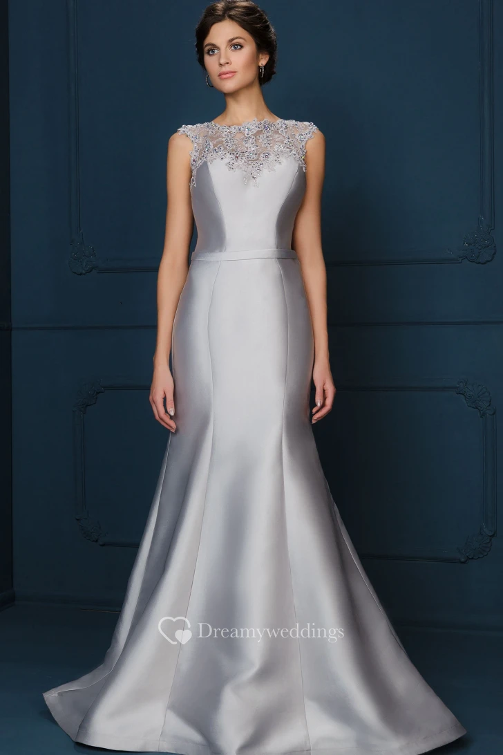 Maxi A-Line Jewel Neck Appliqued Cap Sleeve Satin Mother Of The Bride Dress