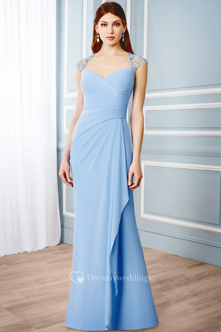 Maxi Draped Cap Sleeve V-Neck Chiffon Formal Dress