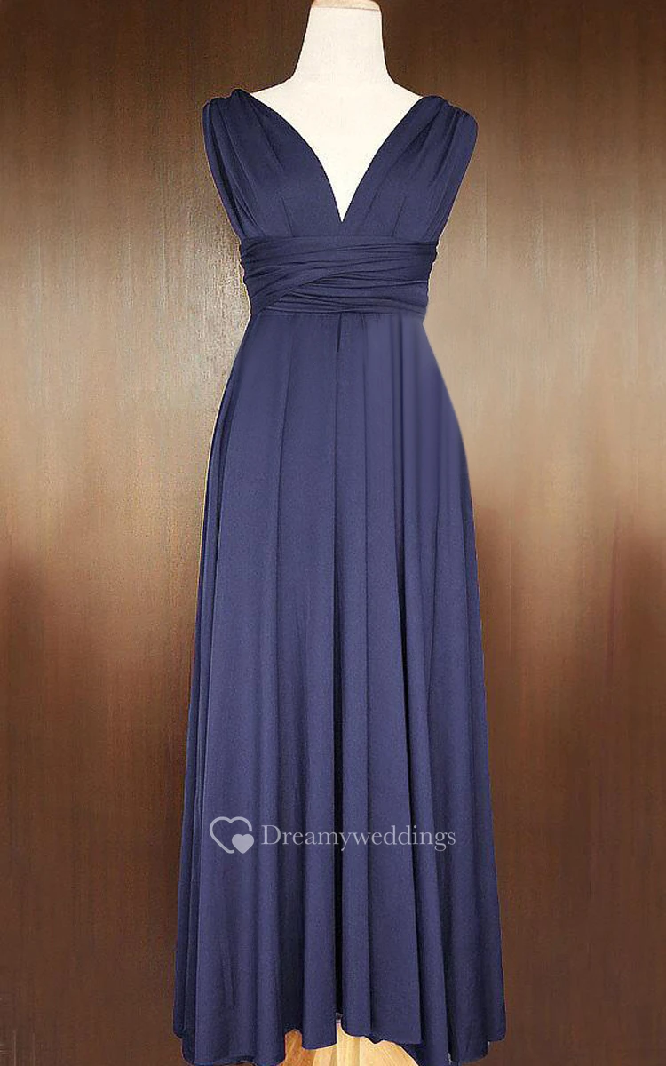 Maxi Midnight Blue Bridesmaid Convertible Wrap Transformer Full Length Cocktail Dress