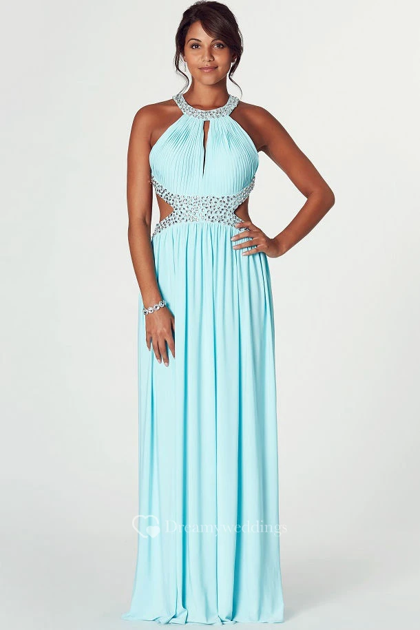 Maxi Sleeveless Scoop Neck Ruched Chiffon Prom Dress
