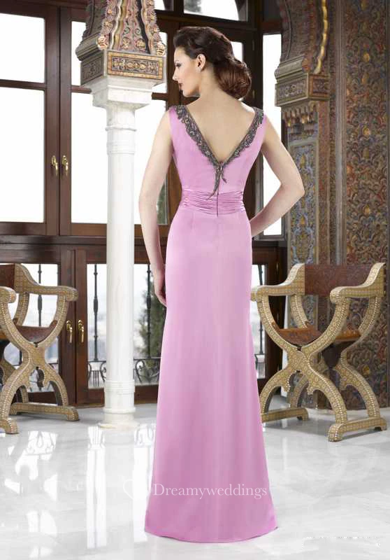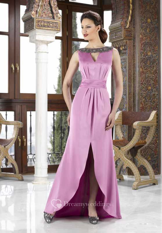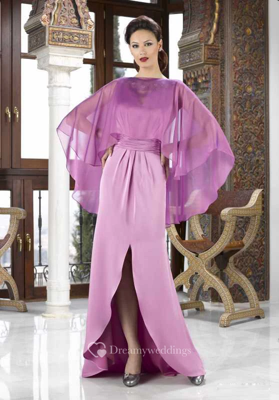 Maxi Split-Front Jewel Neck Satin Mother Of The Bride Dress With Cape And Beading