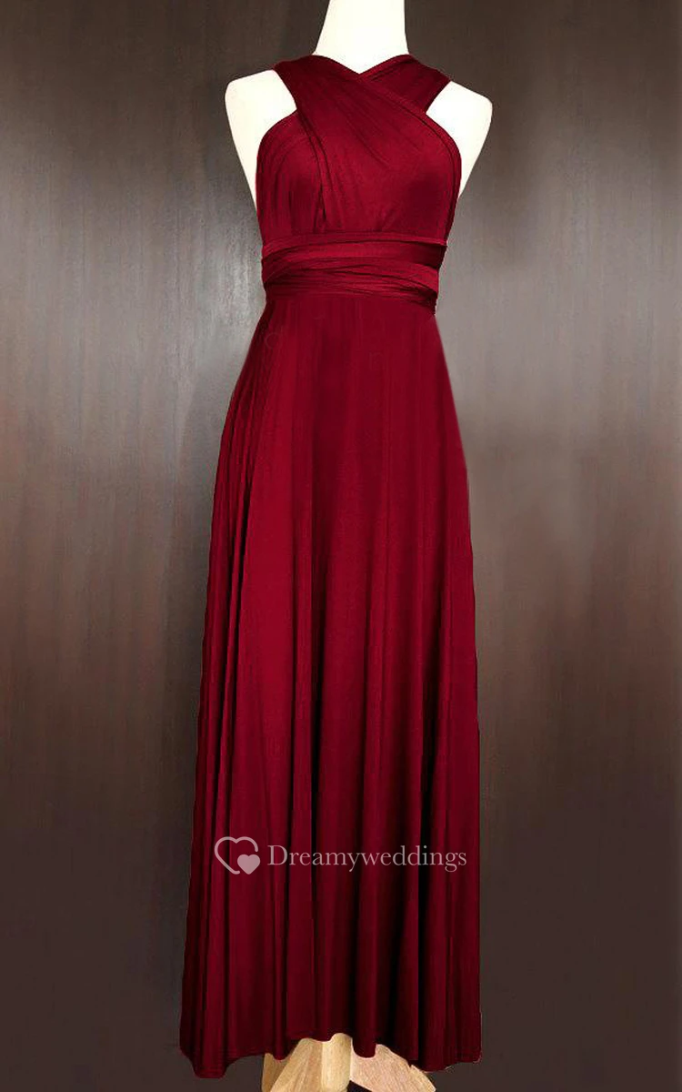 Maxi Wine Red Bridesmaid Infinity Convertible Wrap Multiway Dress