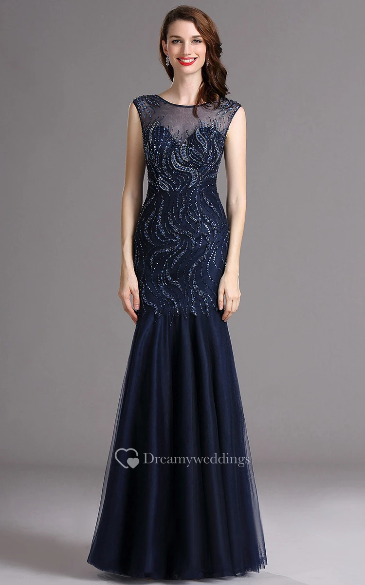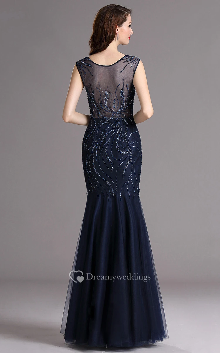 Mermaid Bateau Sleeveless Tulle Sequins Illusion Dress