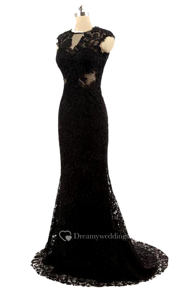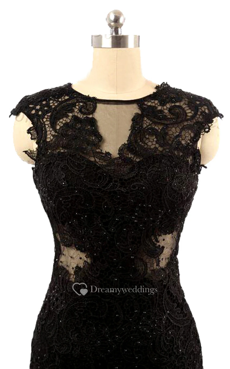 Mermaid Cap-sleeve Lace Dress With Open Back