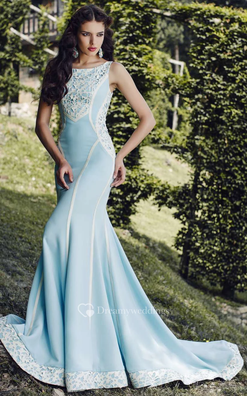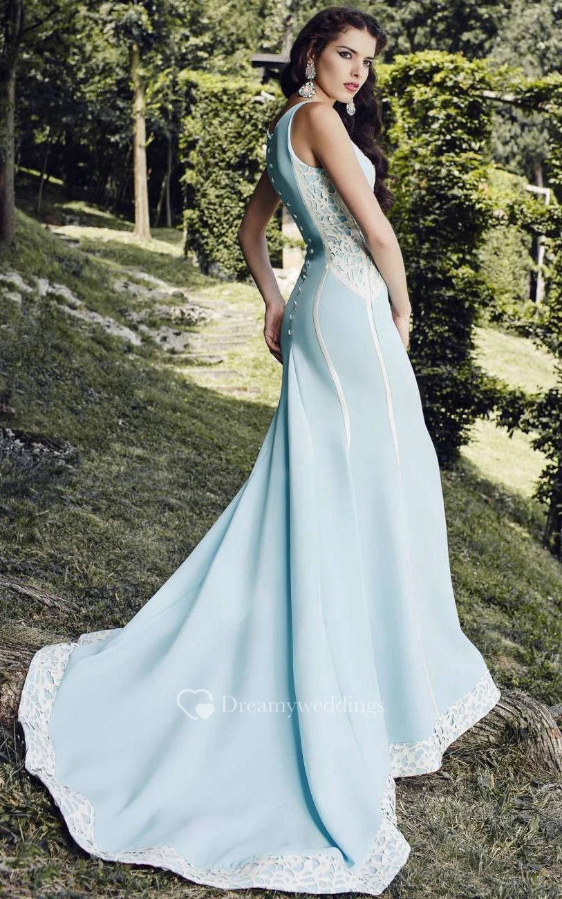 Mermaid Court Train Bateau Sleeveless Satin Lace Pleats Button Dress