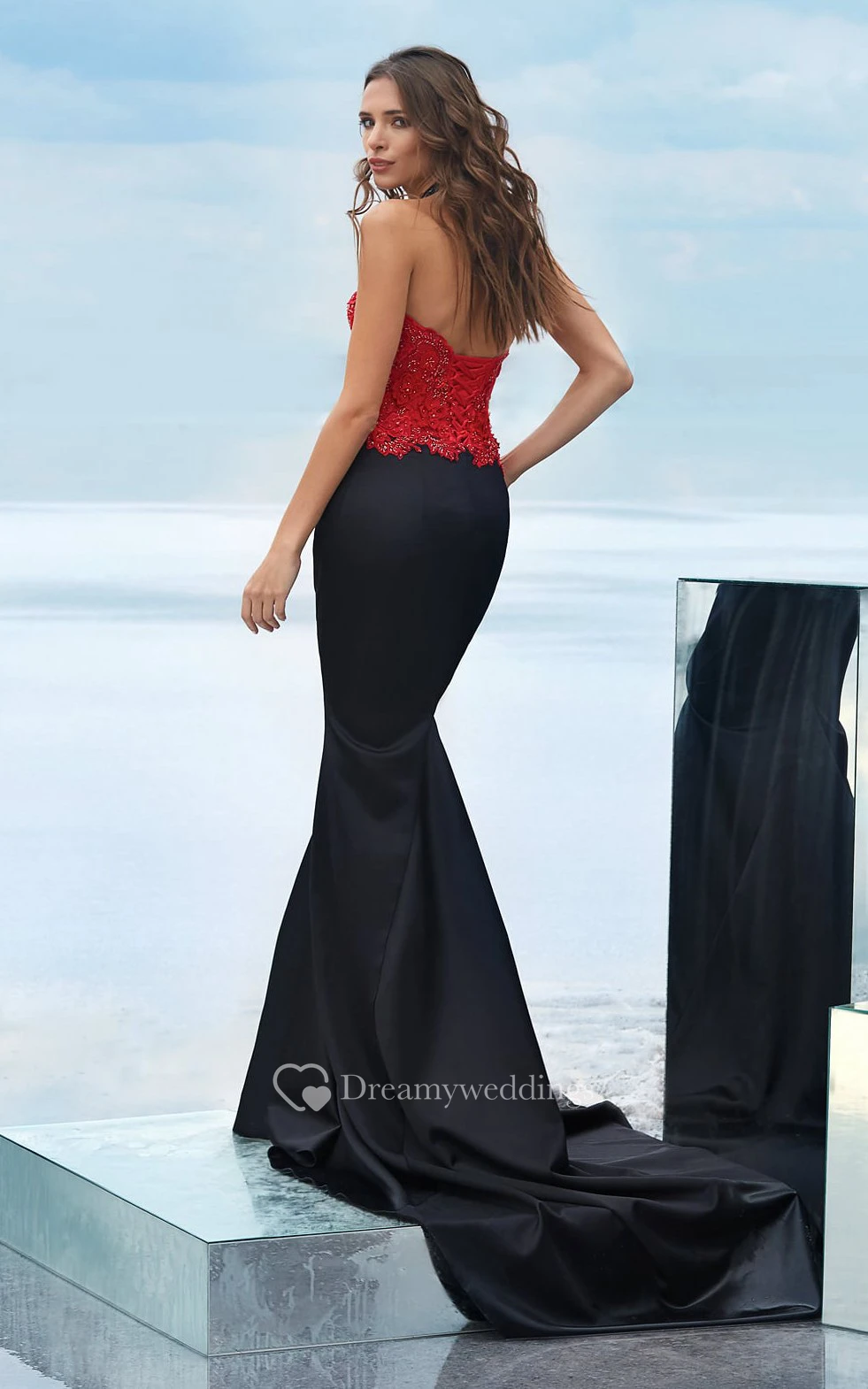 Mermaid Court Train Strapless Sleeveless Jersey Lace-up Dress
