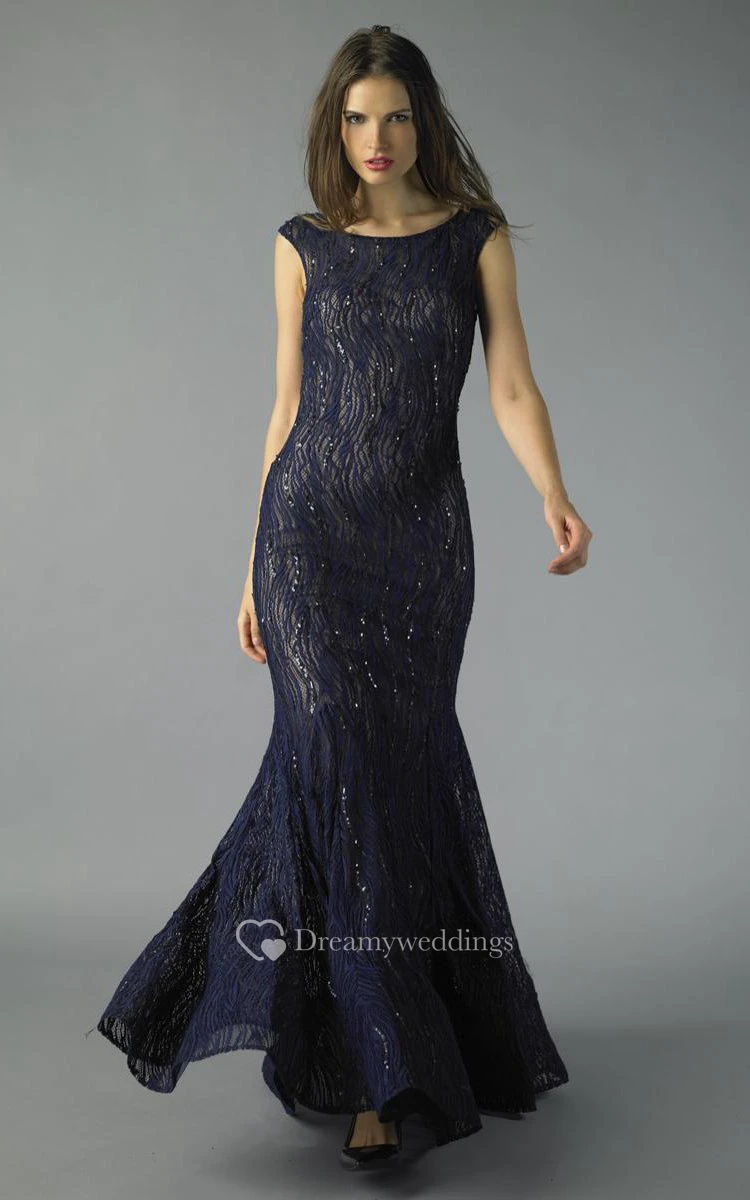 Mermaid Floor-length Bateau Short Sleeve Lace Low-V Back Dress