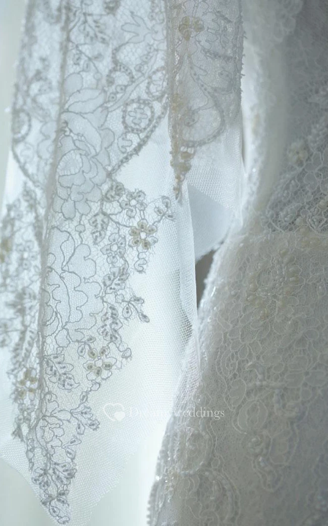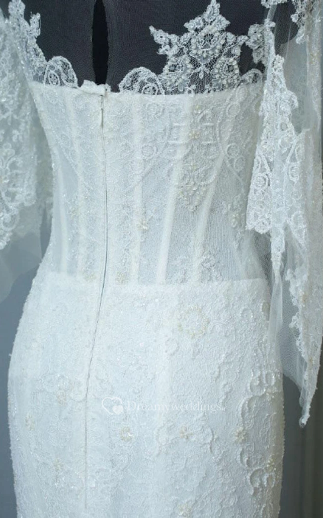 Mermaid Floor-Length Half Sleeve Bell Zipper Keyhole Lace Dress