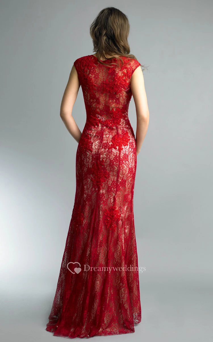 Mermaid Floor-length Jewel Short Sleeve Lace Illusion Dress