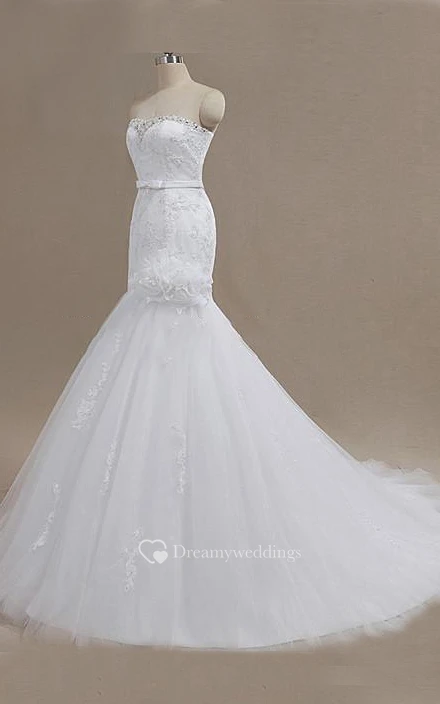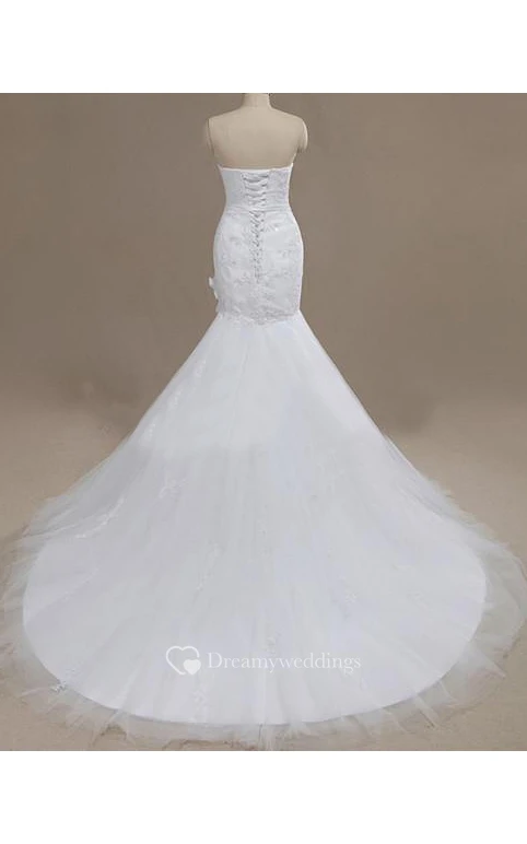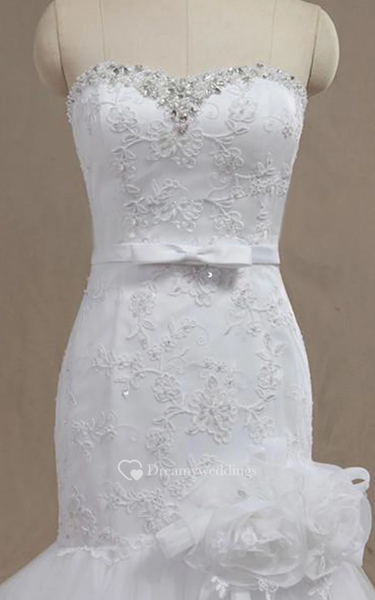 Mermaid Floor-Length Straps Sleeveless Bell Ruffles Corset Back Straps Lace Organza Dress