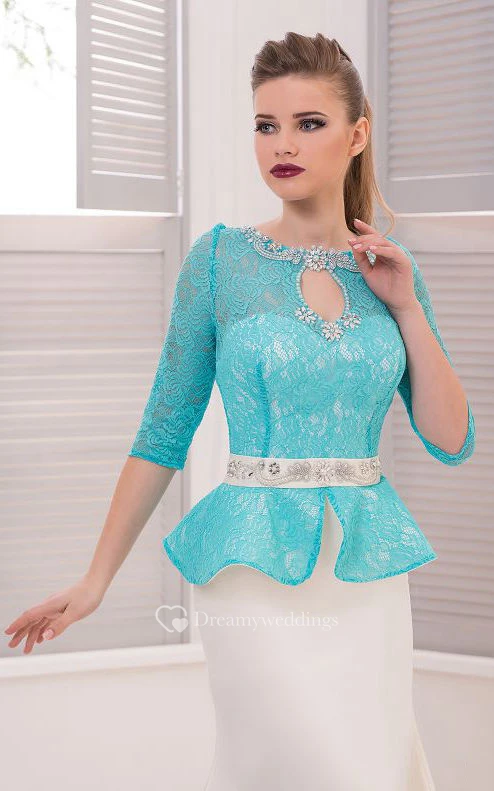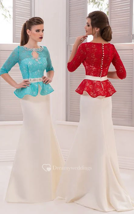 Mermaid Floor-Length Sweep Jewel Half Sleeve Satin Beading Pleats Button Dress