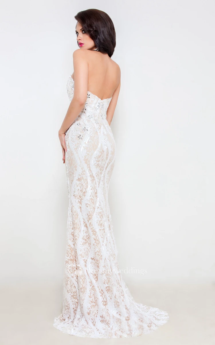 Mermaid Floor-Length Sweetheart Sleeveless Lace Beading Split Front Backless Dress