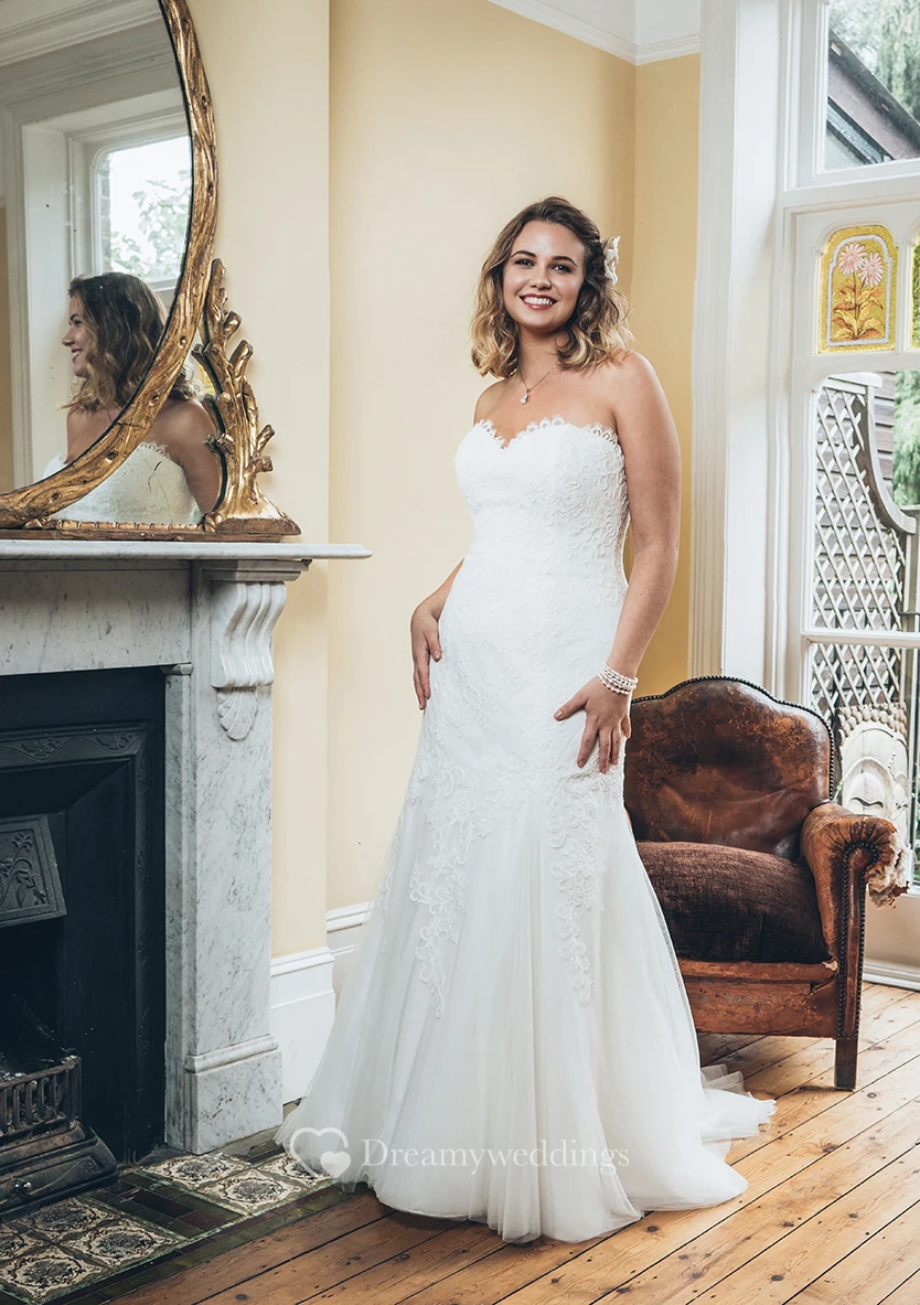 Mermaid Floor-Length Sweetheart Sleeveless Lace Court Train Appliques Dress