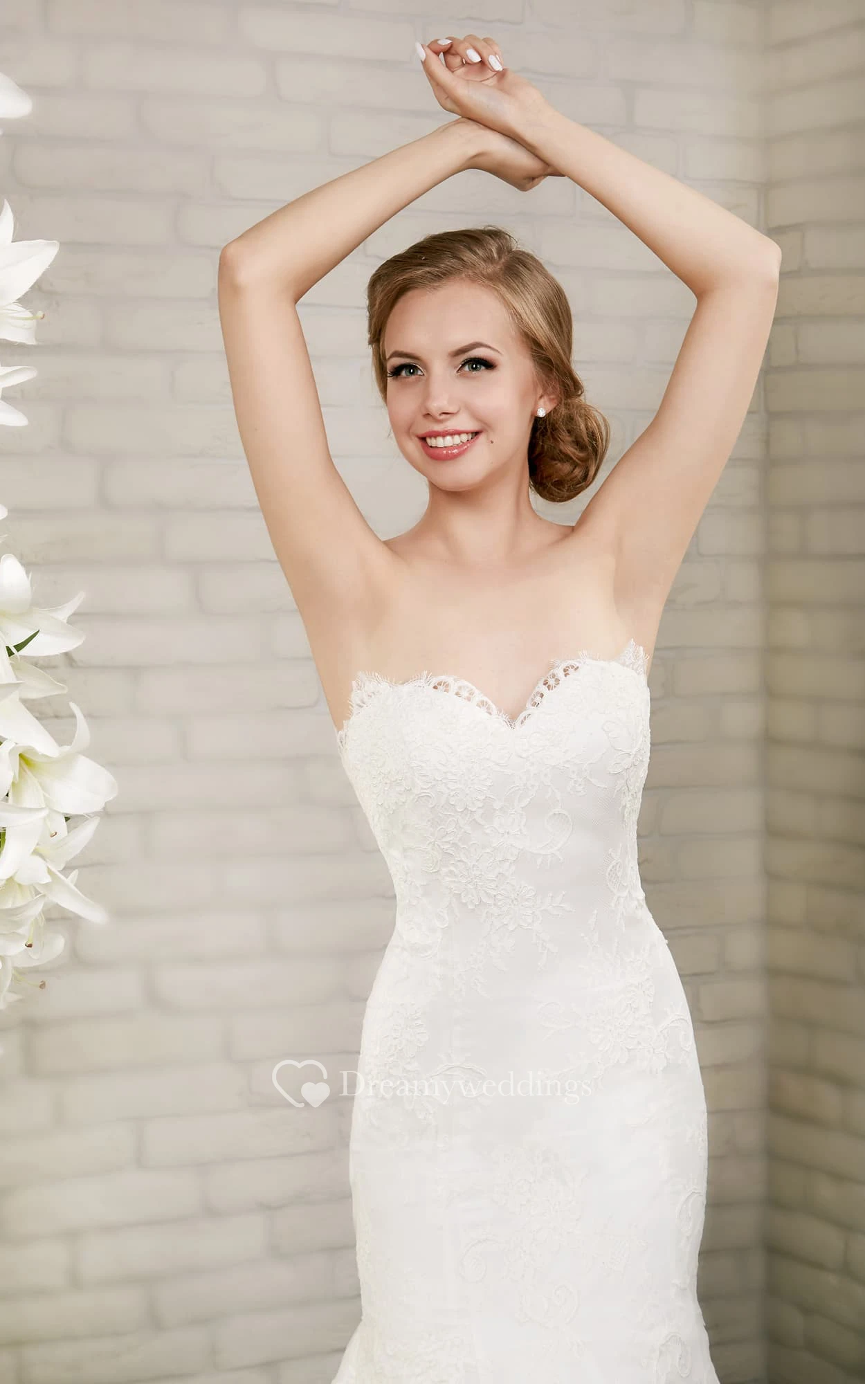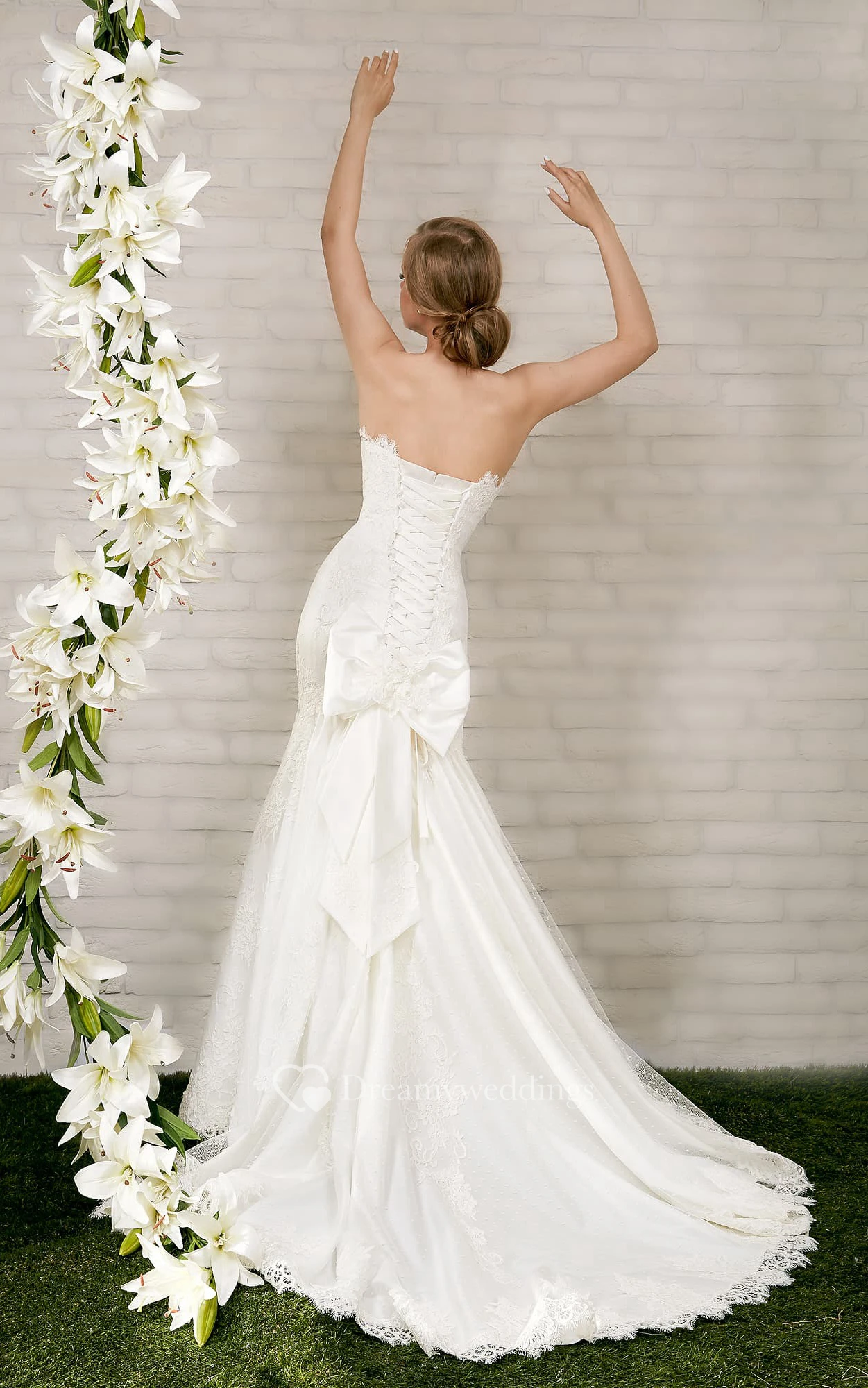 Mermaid Floor-Length Sweetheart Sleeveless Lace-Up Lace Dress With Bow