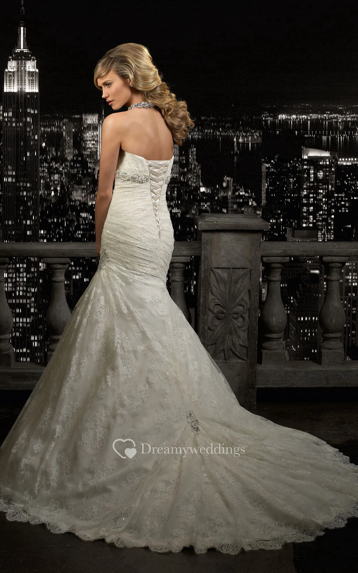 Mermaid Floor-Length Sweetheart Sleeveless Lace-Up Lace Dress With Side Draping And Beading