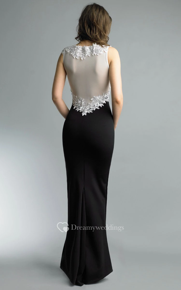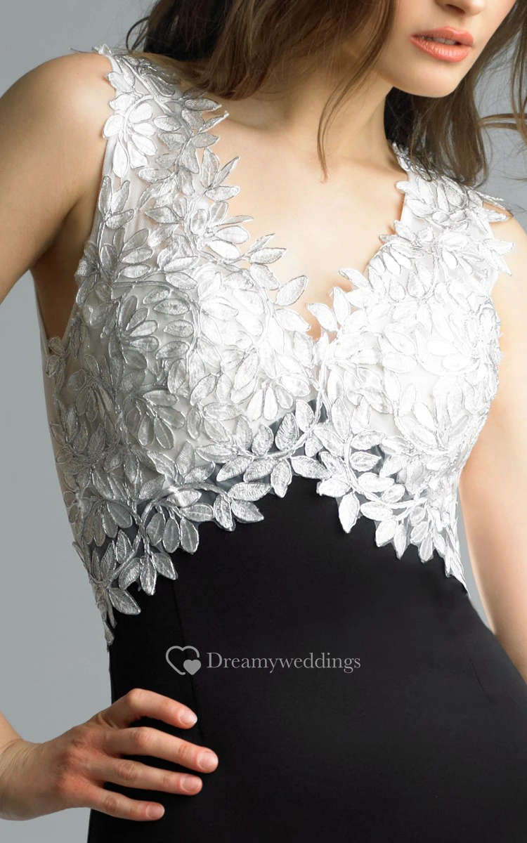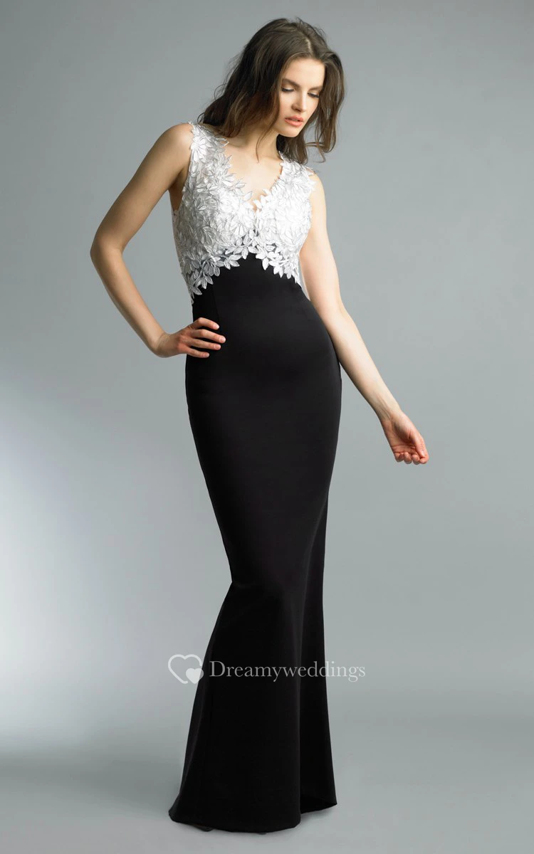 Mermaid Floor-length V-neck Sleeveless Satin Illusion Dress