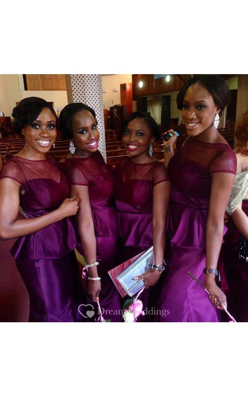 Mermaid Jewel Sweetheart Cap Illusion Peplum Illusion Tulle Taffeta Dress