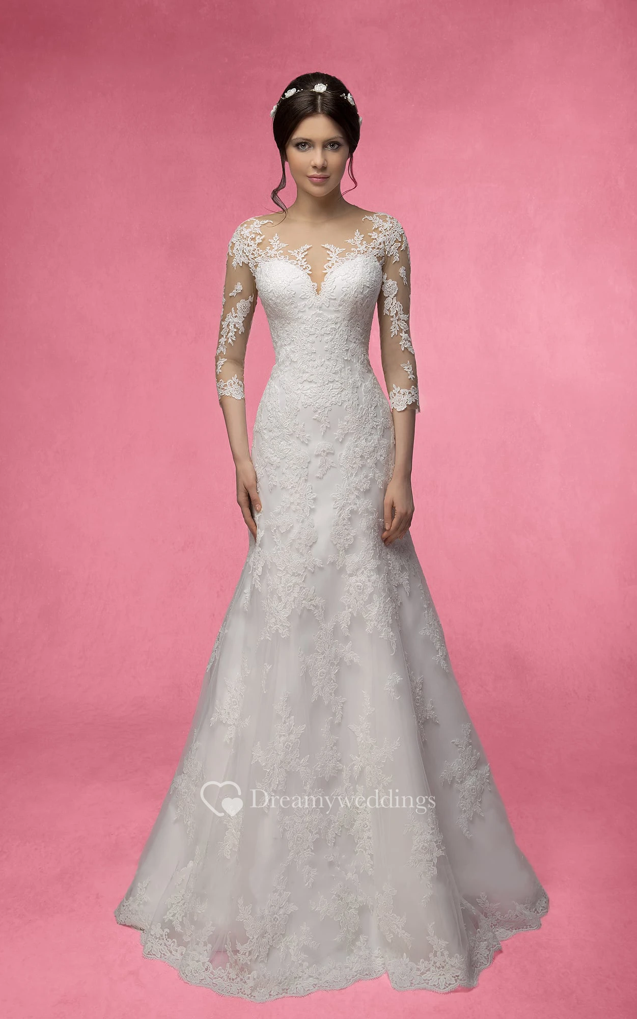 Mermaid Long 3-4-Sleeve Illusion Lace Dress With Appliques