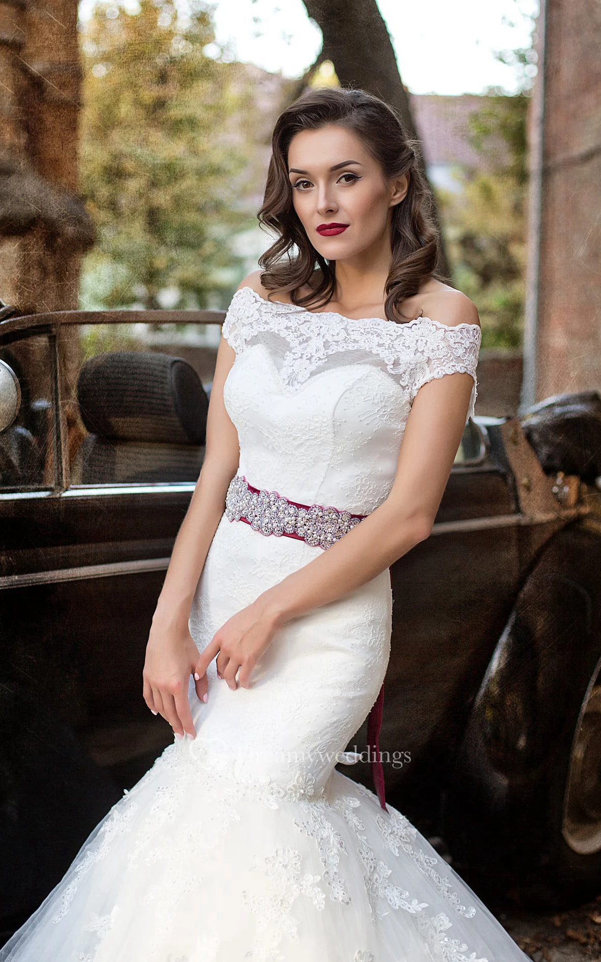 Mermaid Long Off-The-Shoulder Lace-Up Tulle Dress With Lace And Beading