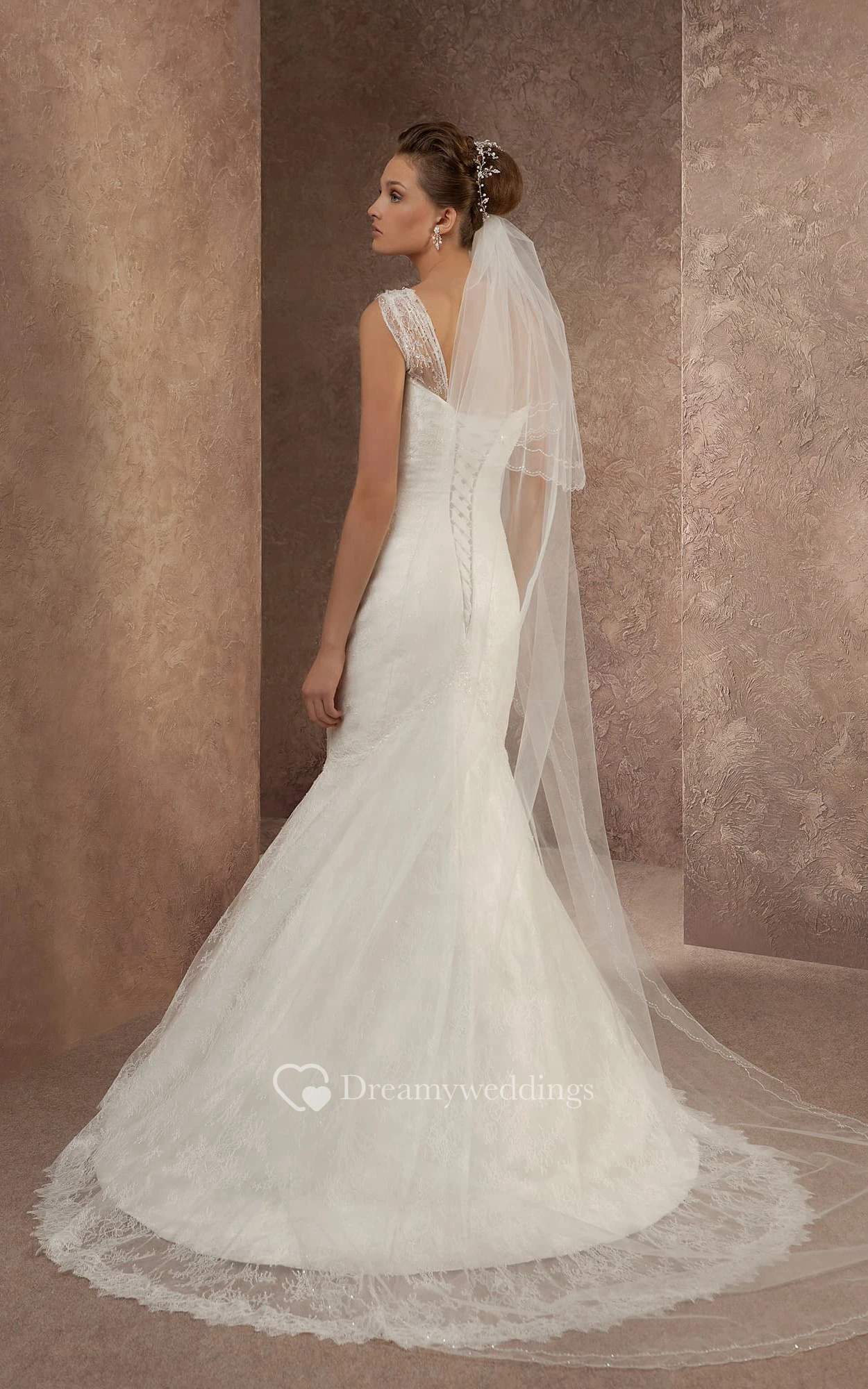 Mermaid Long One-Shoulder Sleeveless Corset-Back Lace Dress With Ruching