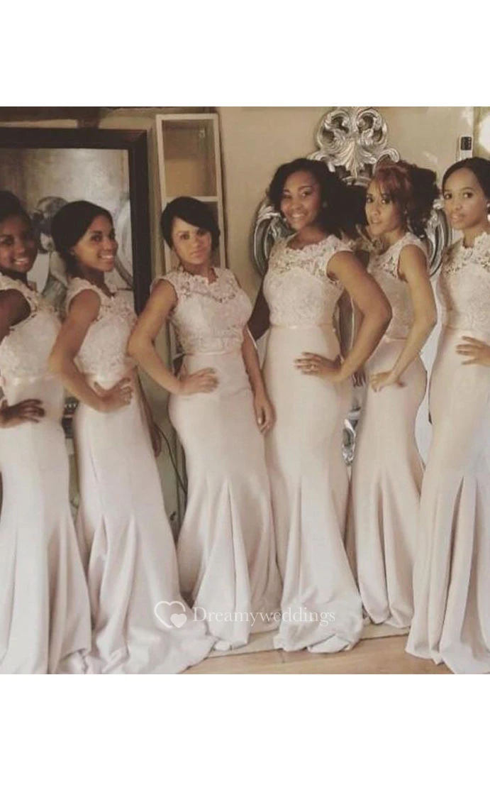 Mermaid Long Scoop Sleeveless Cap Beading Appliques Chiffon Lace Dress