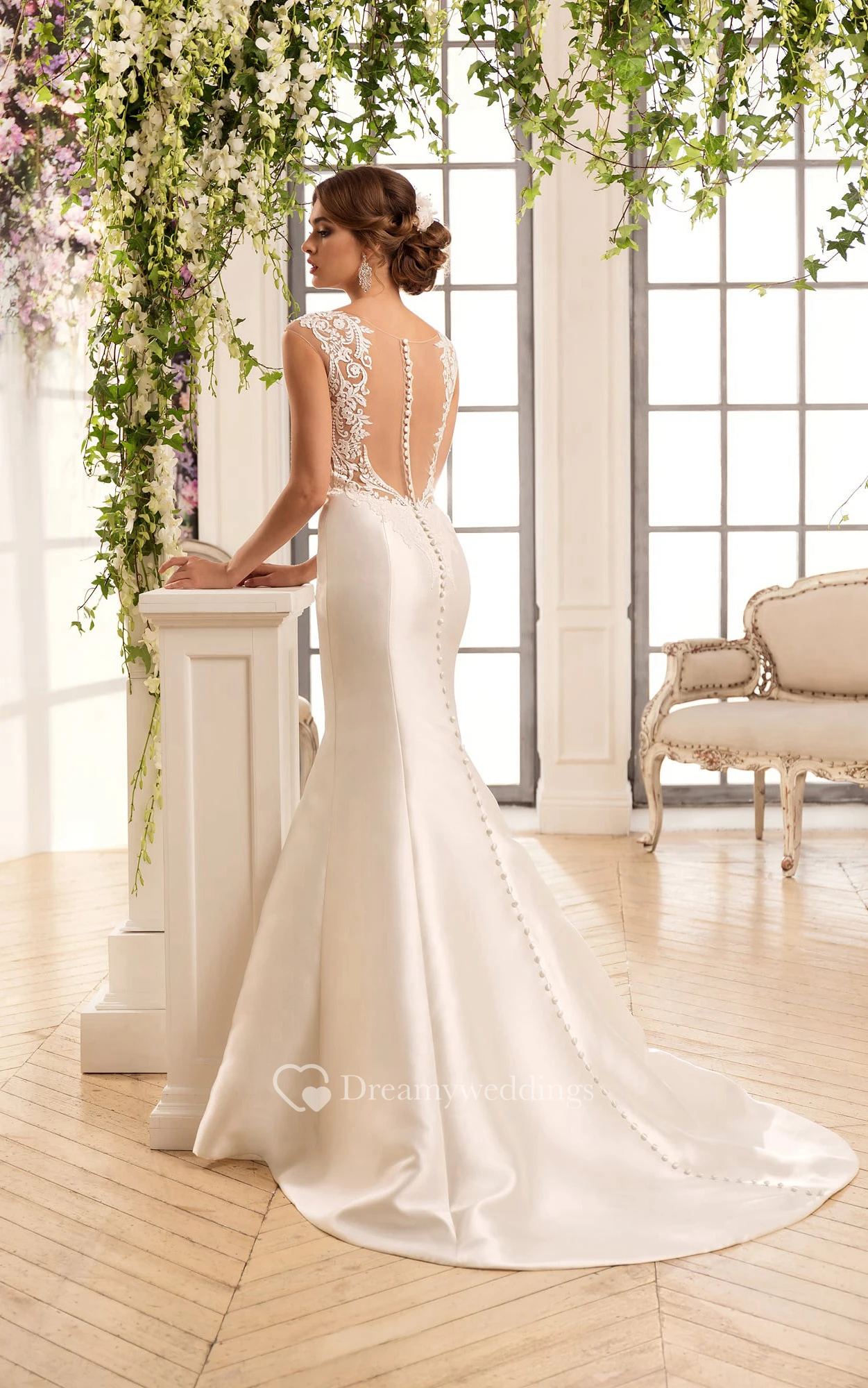 Mermaid Long Scoop Sleeveless Illusion Satin Dress With Appliques