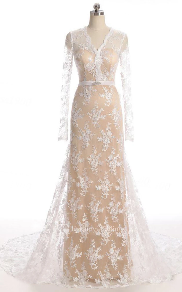 Mermaid Long Sleeve Court Train Lace Dress With Illusion