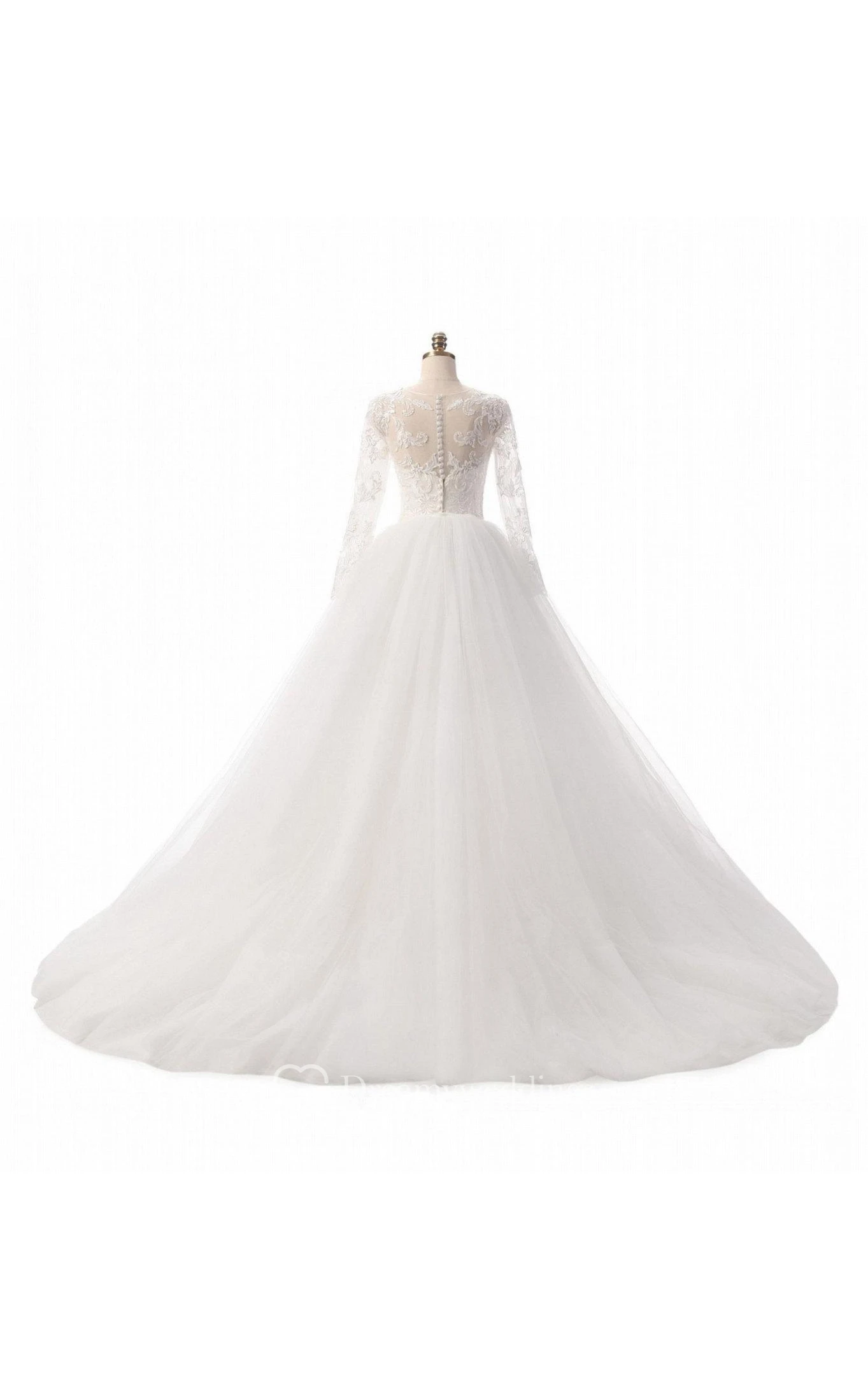 Mermaid Long Sleeve Tulle Lace Weddig Dress With Appliques
