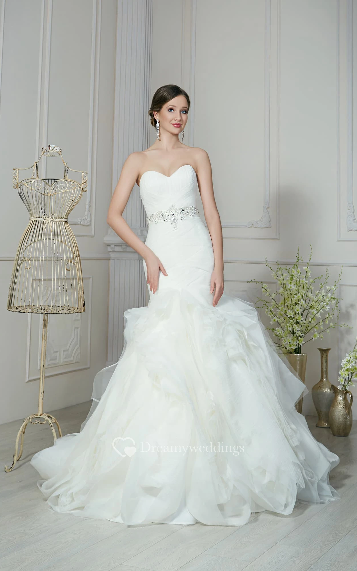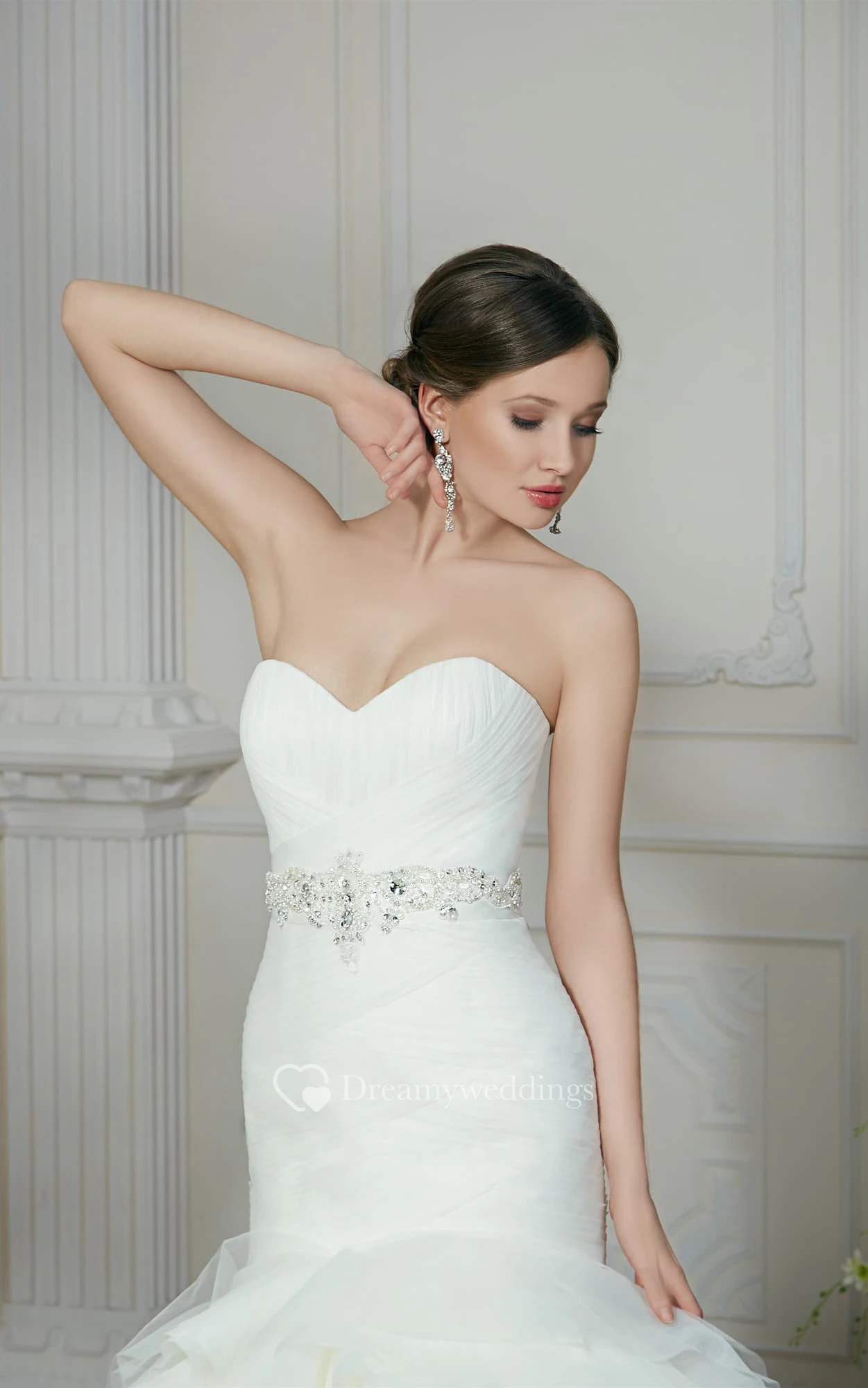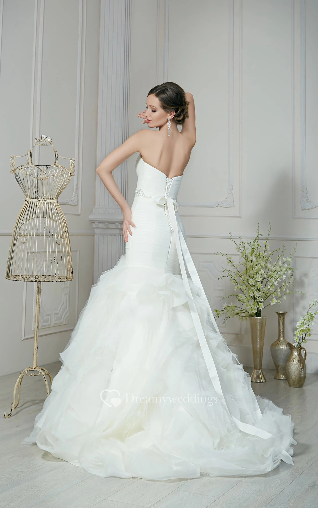 Mermaid Long Sweetheart Sleeveless Corset-Back Organza Dress With Ruffles And Beading