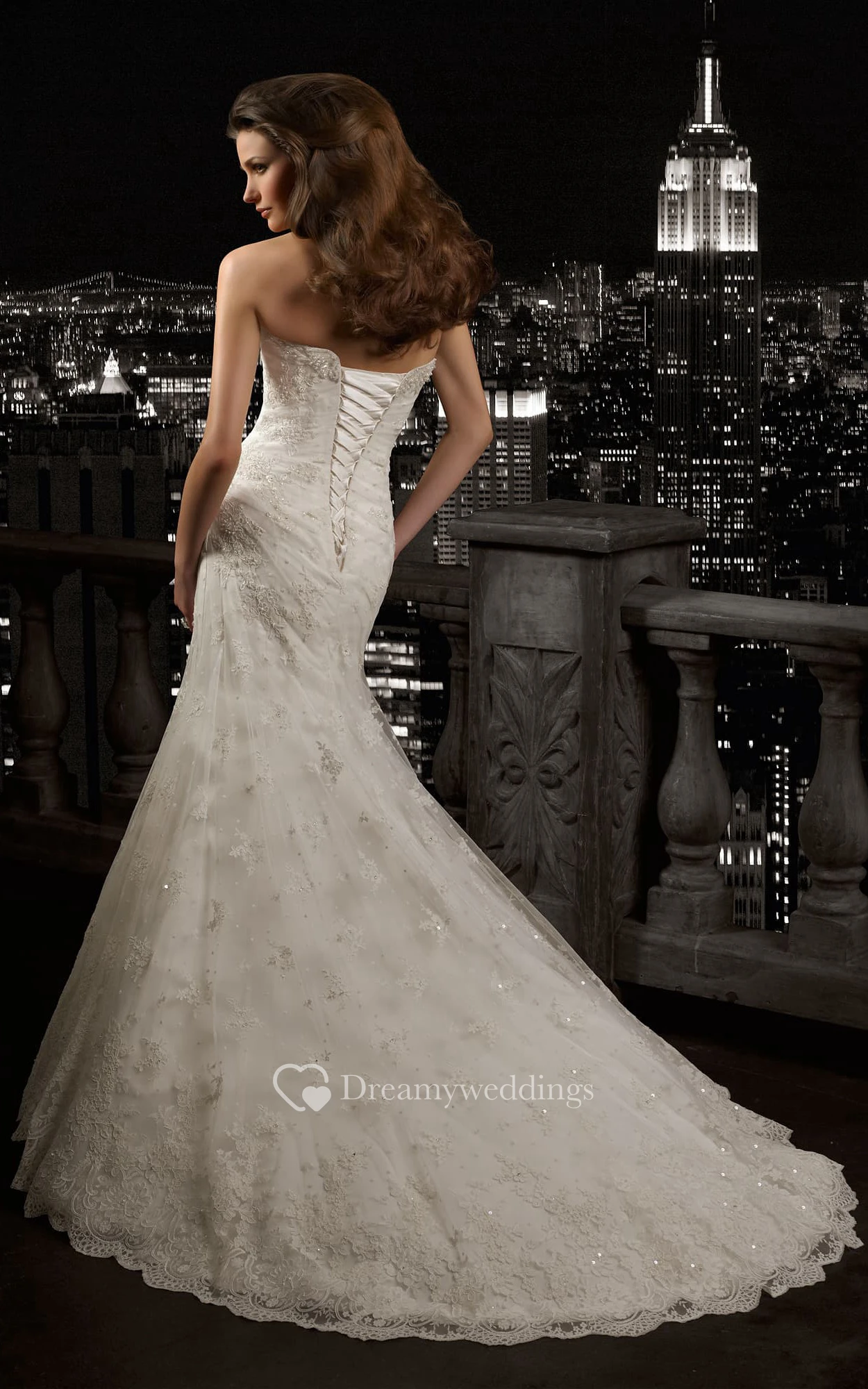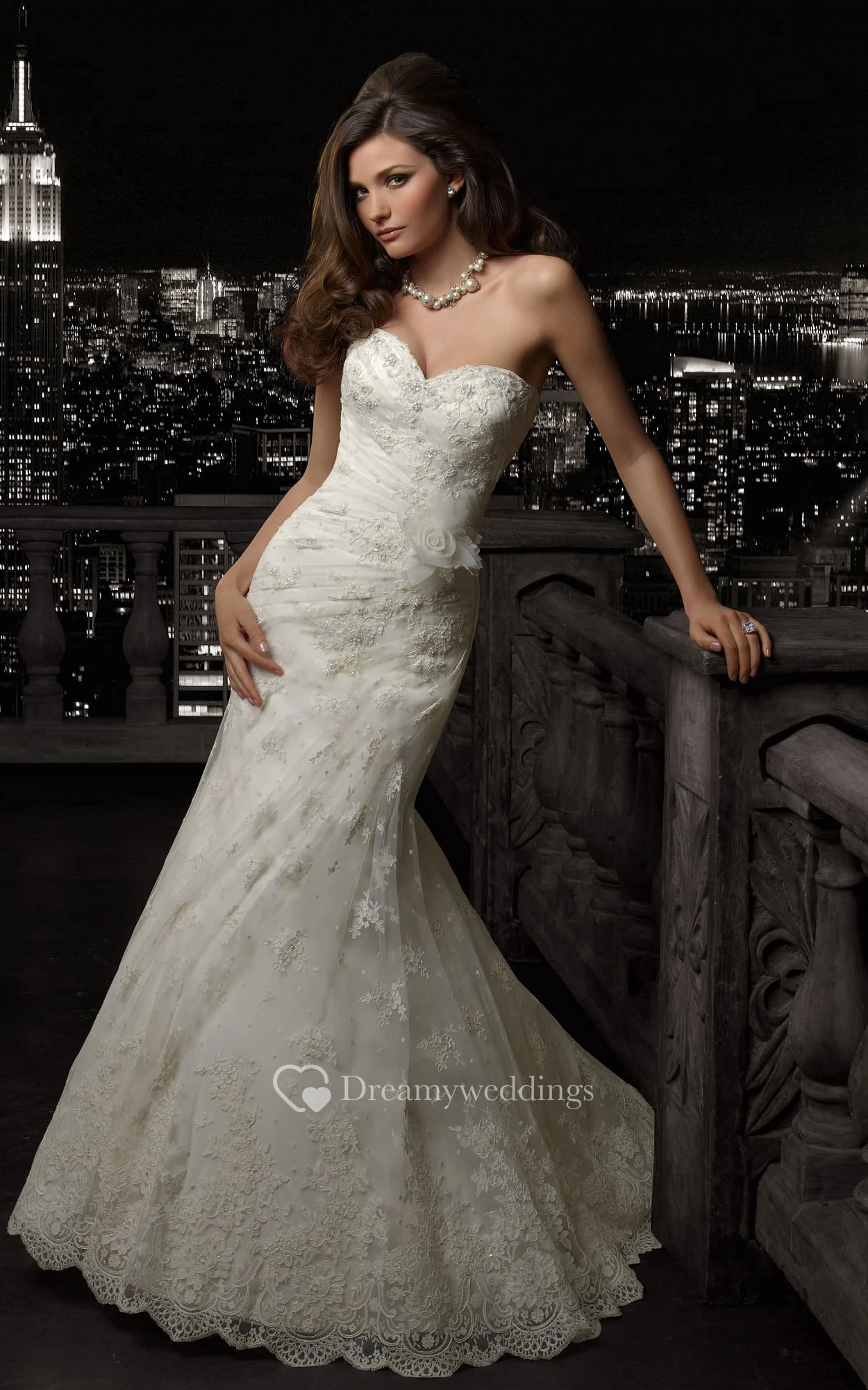 Mermaid Long Sweetheart Sleeveless Lace-Up Lace Dress With Appliques And Side Draping